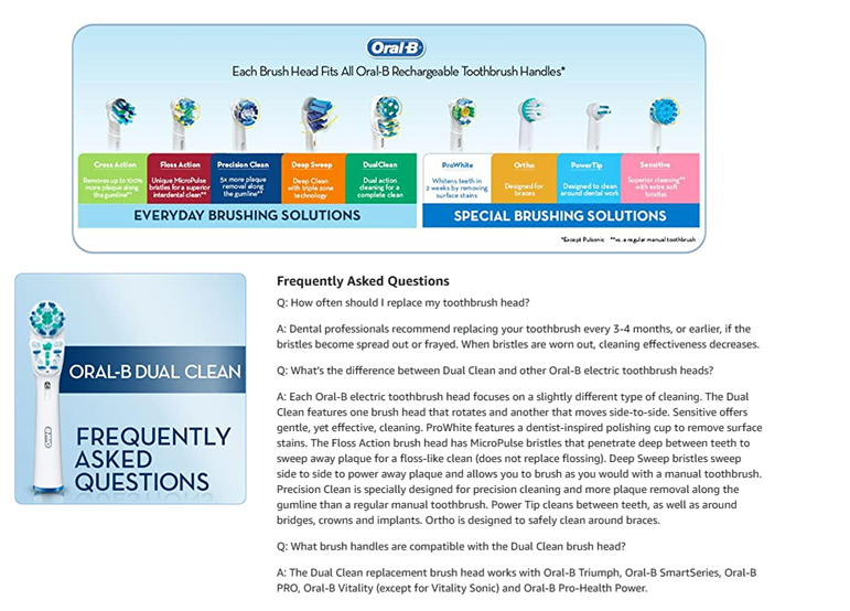 - Includes 3 Genuine Oral-B Dual Clean Electric Toothbrush Replacement Brush Heads