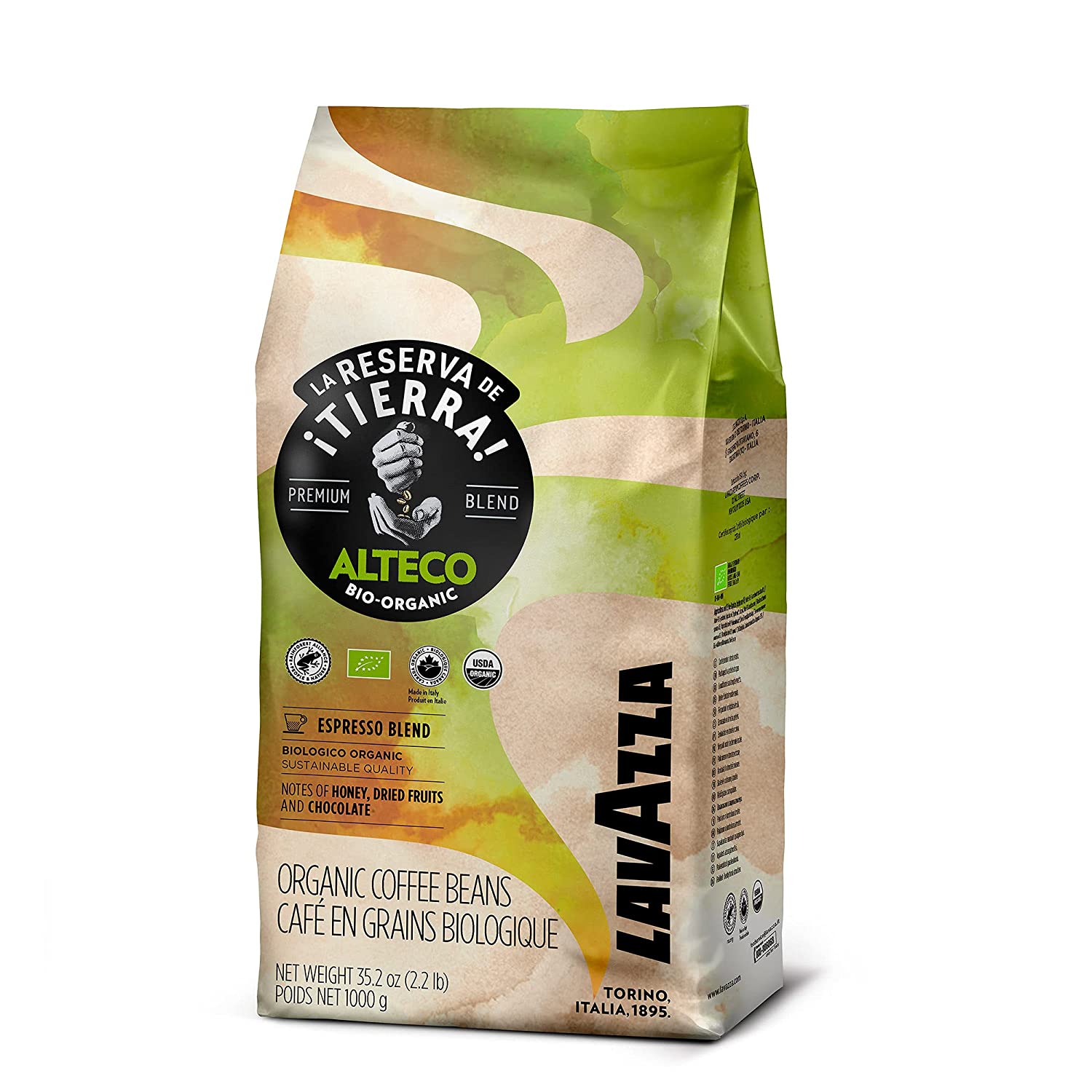 One bag of 2.2 lb Lavazza Super Crema Whole Bean Coffee Blend