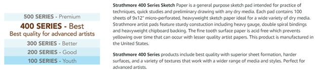 The Strathmore, 400 Series Sketch Pad contains a heavyweight sketch paper perfect for art exploration. With a fine tooth surface, this sketch pad is ideal for classroom experimentation, practicing various techniques, and quick studies with dry media. The Strathmore, 400 Series Sketch Pad provides a great way to track your progression over time in a convenient and transportable pad.