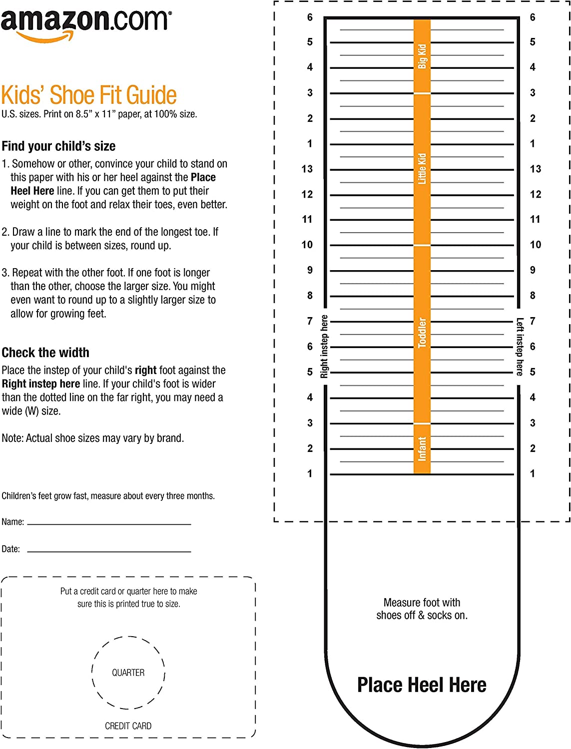 • Begin 1/2 - 1 size up from street shoe size. This shoe runs wide.