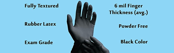 Phantom latex gloves have received some of the highest ratings from tattoo, piercing, body art artists and high-end hair salon and beauty professionals. Their distinct dark black color stands out and masks stains, inks and dyes during use. Because of their dark black color, and their stretchability, flexibility and dexterity from natural rubber latex material, they are also the preferred choice of law enforcement agencies, correctional facilities, fire departments, homeland security and postal facilities These gloves have the lowest allowable protein claim by the FDA or equal or less than 50µg/dm2 of glove surface, to minimize potential rubber latex protein related allergies. The textured surface provides superior grip in both wet and dry applications.