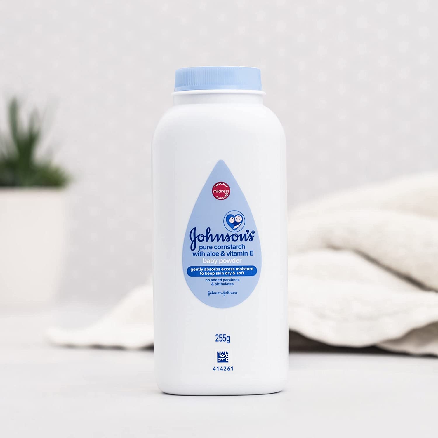 • 9-ounces of Johnson's baby powder with naturally derived cornstarch, aloe, and vitamin E provides a gentle way to soothe your baby's skin and leave it feeling soft and smooth