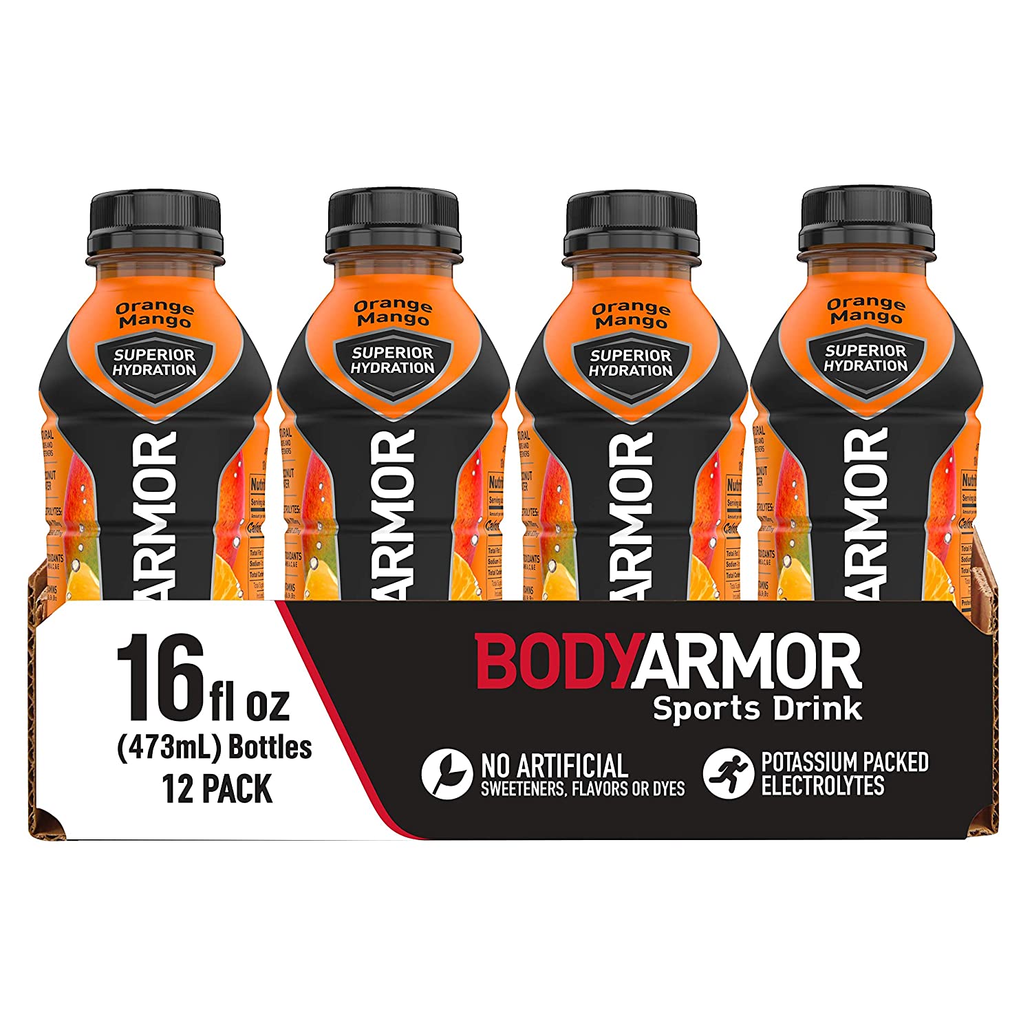 BODYARMOR Sports Drink Sports Beverage, Orange Mango, Natural Flavors With Vitamins, Potassium-Packed Electrolytes, Perfect For Athletes, 16 Fl Oz (Pack of 12)
