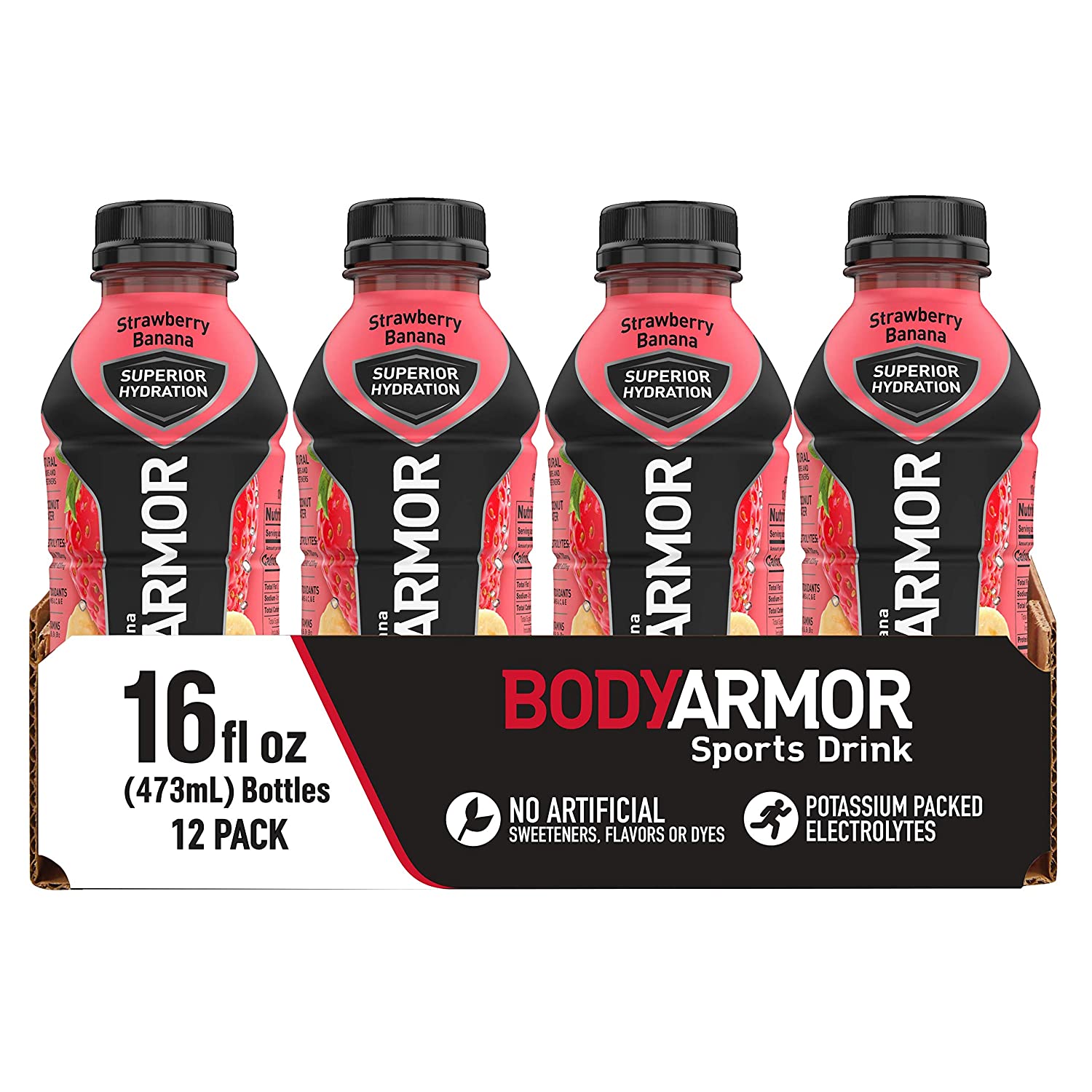 BODYARMOR Sports Drink Sports Beverage, Strawberry Banana, Natural Flavors With Vitamins, Potassium-Packed Electrolytes, Perfect For Athletes, 16 Fl Oz (Pack of 12)
