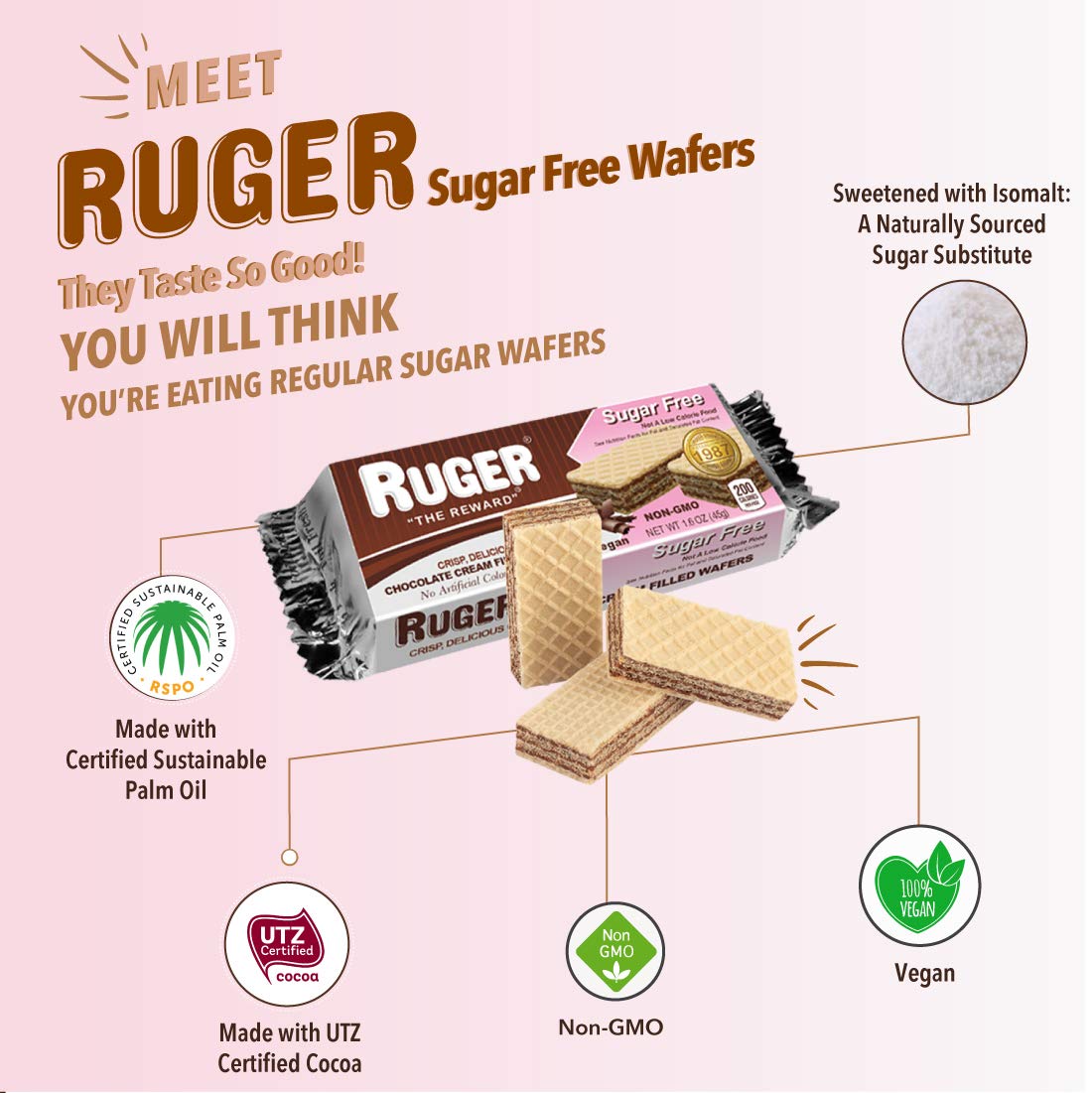 RUGER Sugar Free Chocolate Wafers 1.6 Ounce (Pack of 12)
