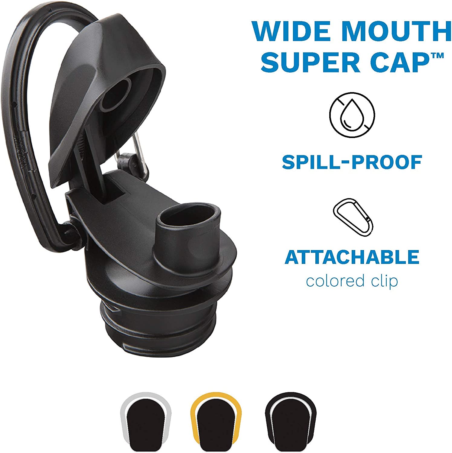 • Wide mouth opening. Simply unscrew the Super Cap from the bottle to reveal the wide opening. Great for filling and cleaning your bottle!