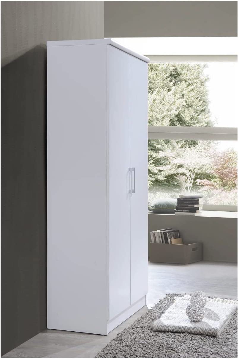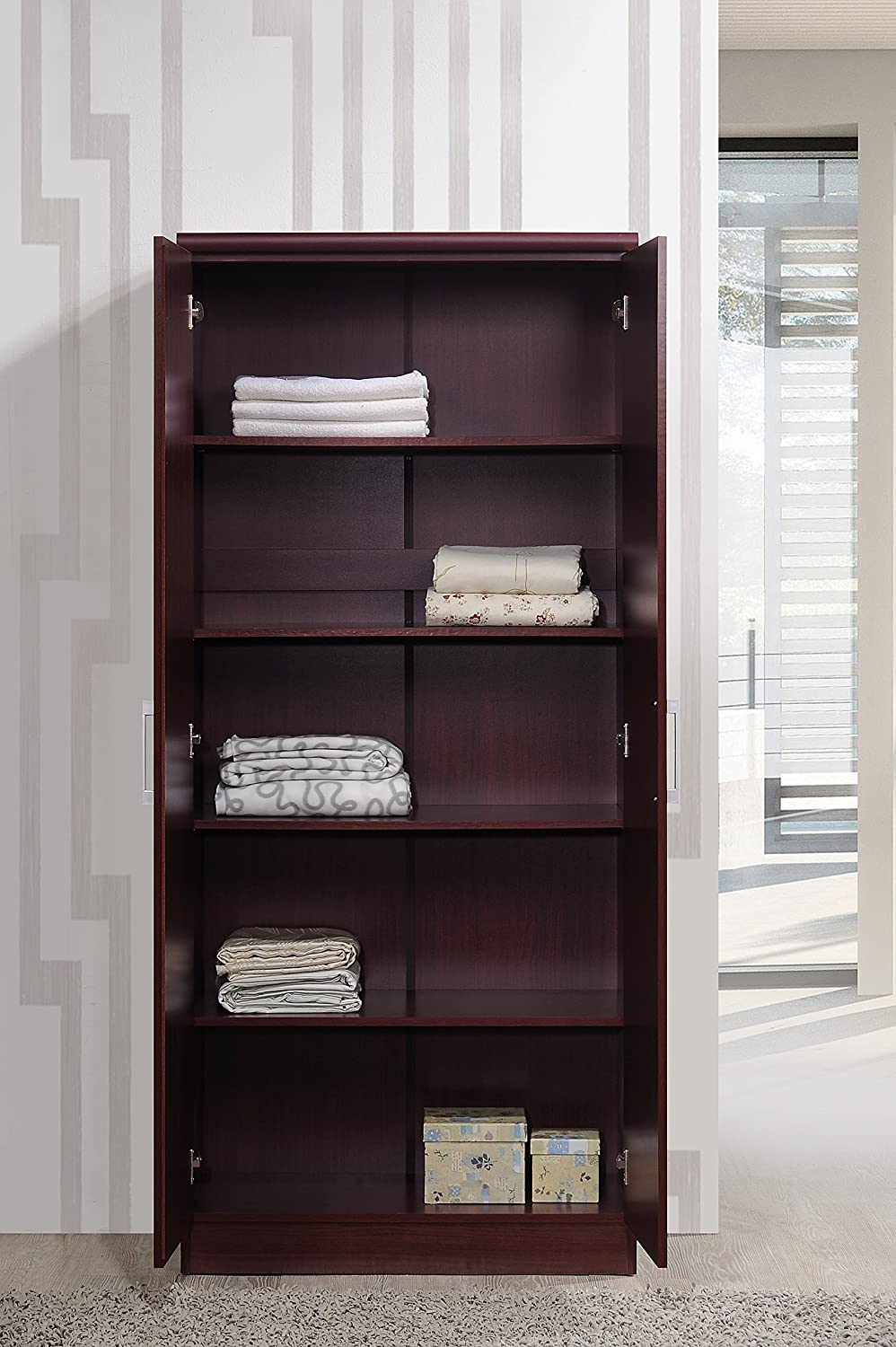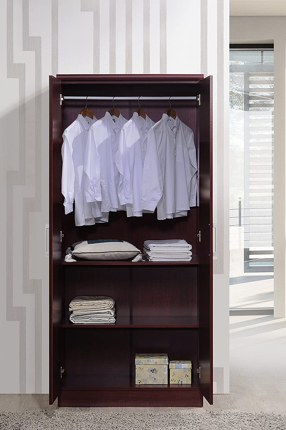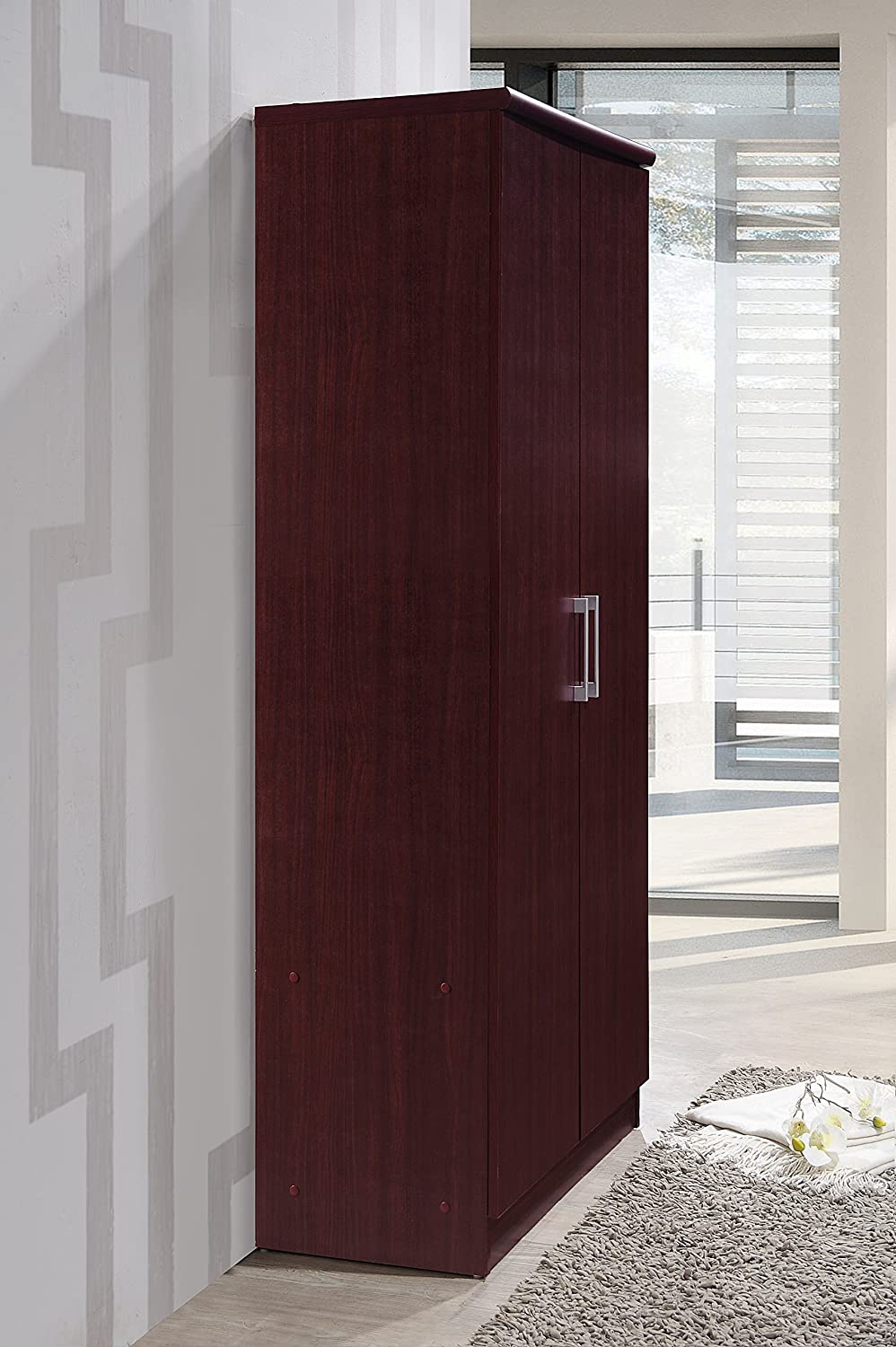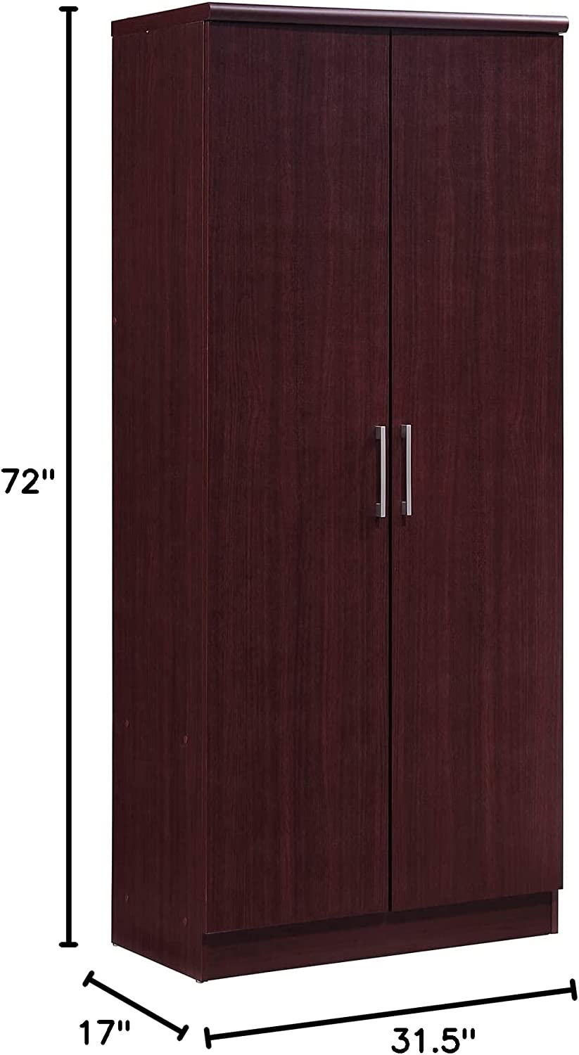 HODEDAH IMPORT Hodedah 2 Door Wardrobe with Adjustable/Removable Shelves & Hanging Rod, Mahogany