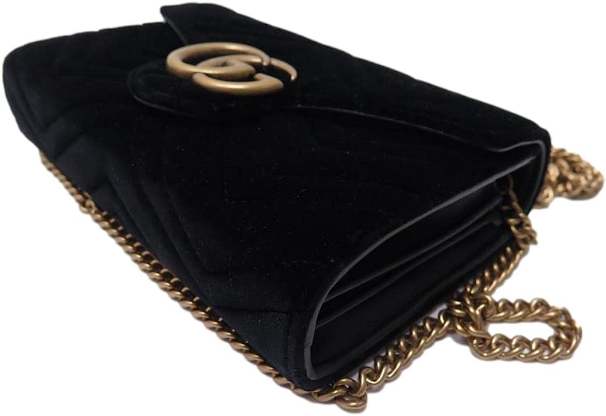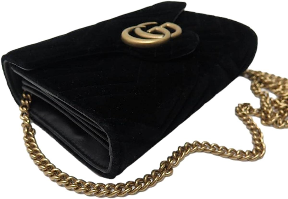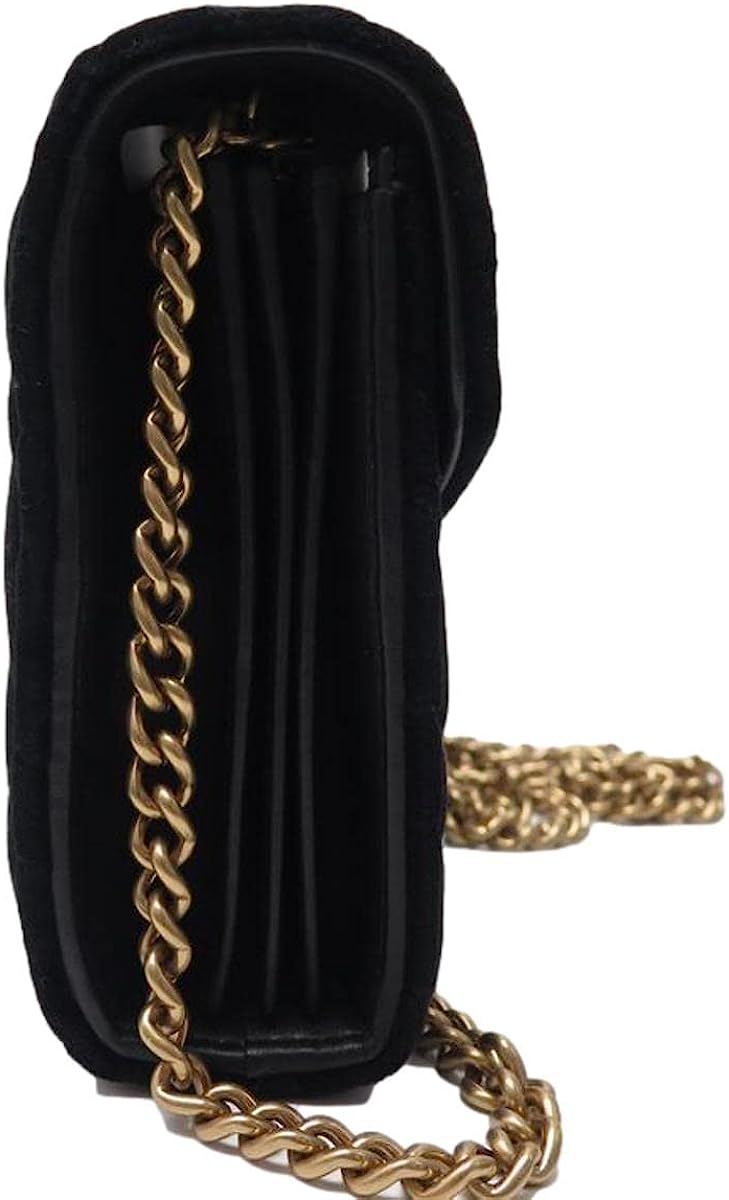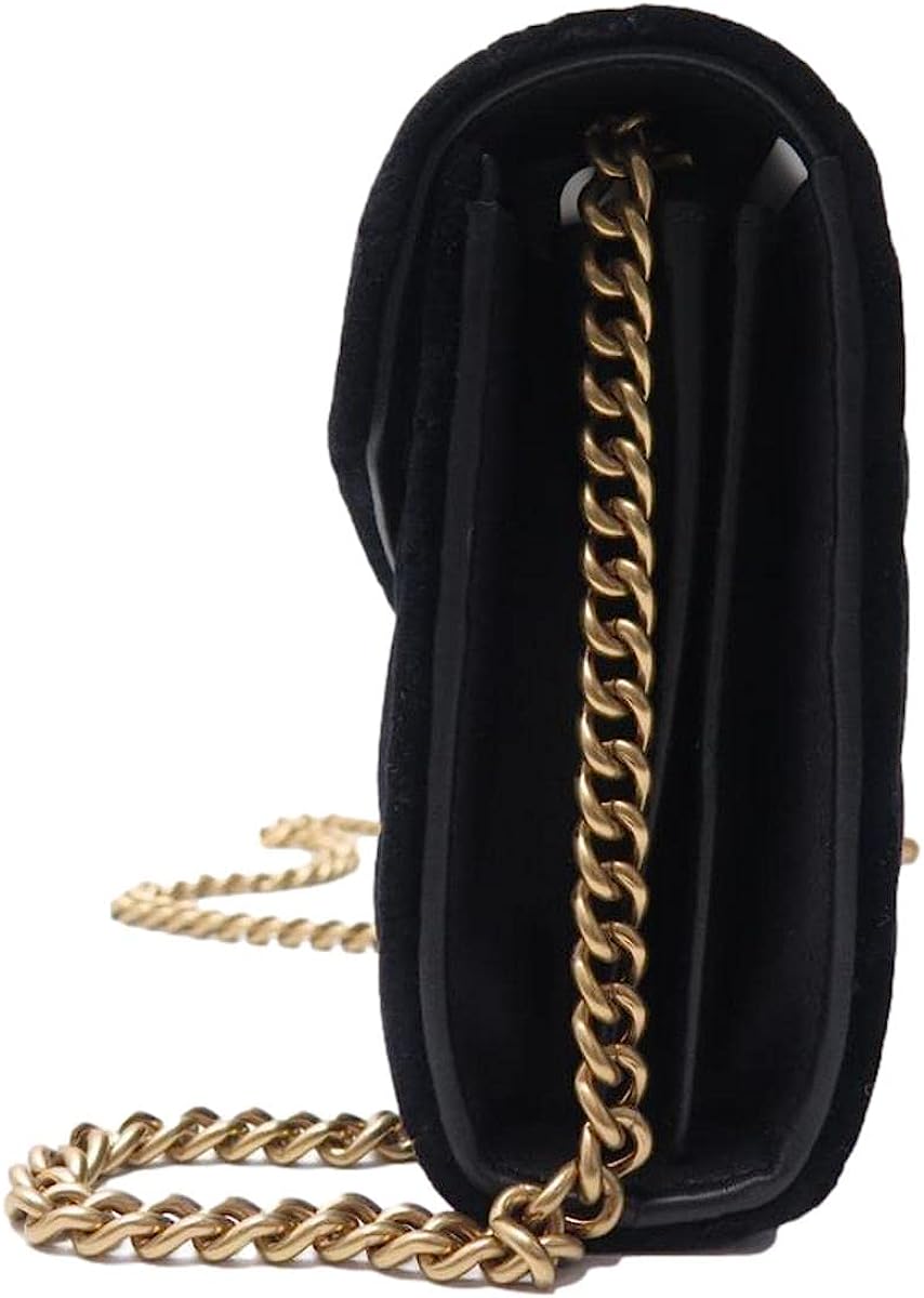 • Gucci Marmont velvet handbag is crafted with a luxurious quilted velvet. The bag is adorned with an shiny gold-tone GG logo on the front and a quilted heart design on the back. The chain strap, which can be worn as a double chain shoulder strap or as a crossbody, and the interior patch pocket add functionality to this beautiful bag.