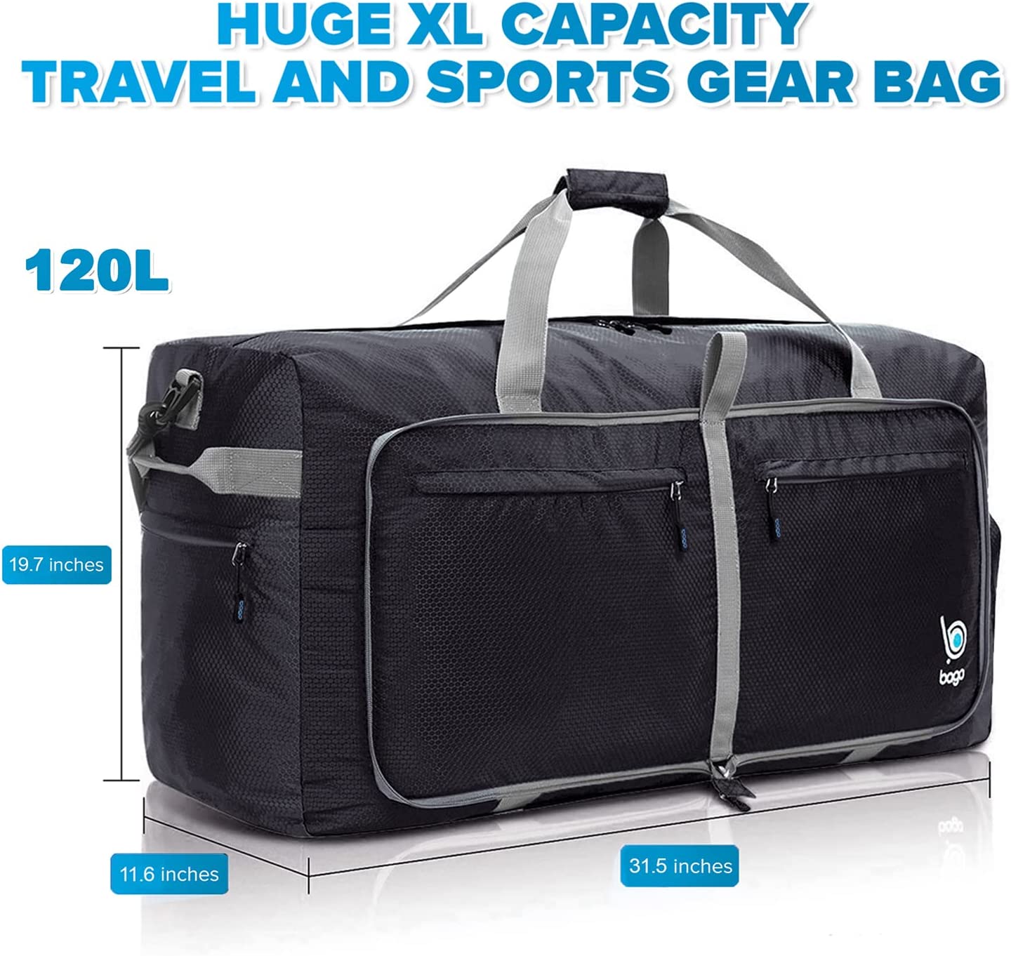 Bago Travel Duffel Bags for Traveling Women & Men- Foldable Weekender Bag - 80L 27" Large Duffle Bag For Travel & Camping Bag - Packable Lightweight Overnight Luggage bag (Black)