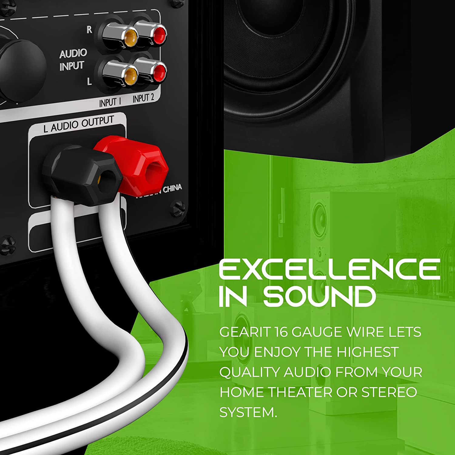 16AWG Speaker Wire, GearIT Pro Series 16 Gauge Speaker Wire Cable (100 Feet / 30.48 Meters) Great Use for Home Theater Speakers and Car Speakers, White