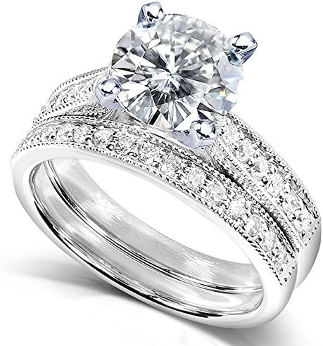 Kobelli Round Moissanite Pave-Set Bridal Set 2 1/3 CTW 14k White Gold