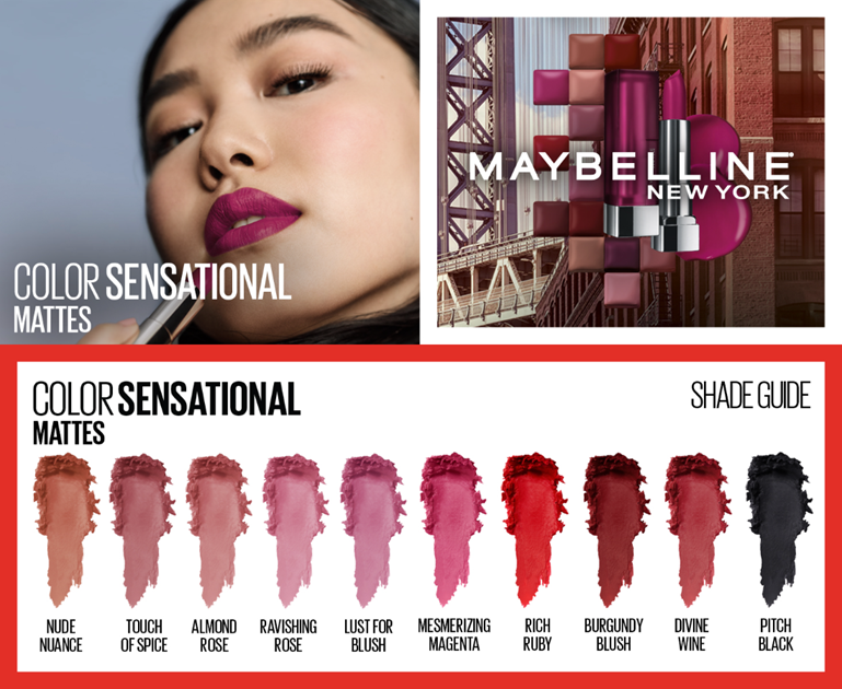 • Maybelline Lips: Layer on intense color that lasts with Superstay 24 hr Lip color, slay a matte lip with SuperStay Matte Ink Liquid Lipstick, renew with Baby Lips Moisturizing Lip Balm, or add gloss to any color with Clear Lip Gloss Topcoat