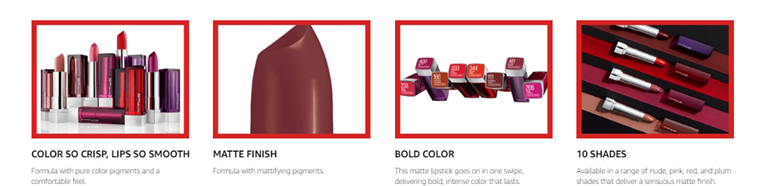 • Color Sensational Lipstick: For hyperpigmented lip color in an ultra-hydrating formula, look no further than Color Sensational lipsticks; Available in matte, satin, and gloss and shades from nude to bold black