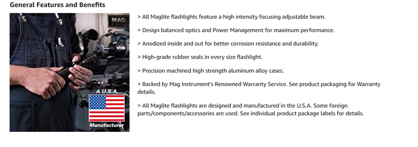 Handheld Flashlight, Flashlight Grade Tactical, Rechargeable No, Lamp Type LED, Flashlight Battery Size AAA, Flashlight Battery Type Alkaline, Number of Batteries 3, Batteries Included Yes, Battery Burn Time 6. 8 hr. , Length 4. 80 In. , 200 Lumens, Lumens Range 100 to 249, 6. 8 hr. Run Time on High Setting, Maximum Lumens Output 200, Body Color Black, Body Material Aluminum, Body Dia. 1. 00 In. , Switch Type Push Button, Lens Material Polycarbonate, Safety Rated Not Safety Rated, Beam Distance 224m