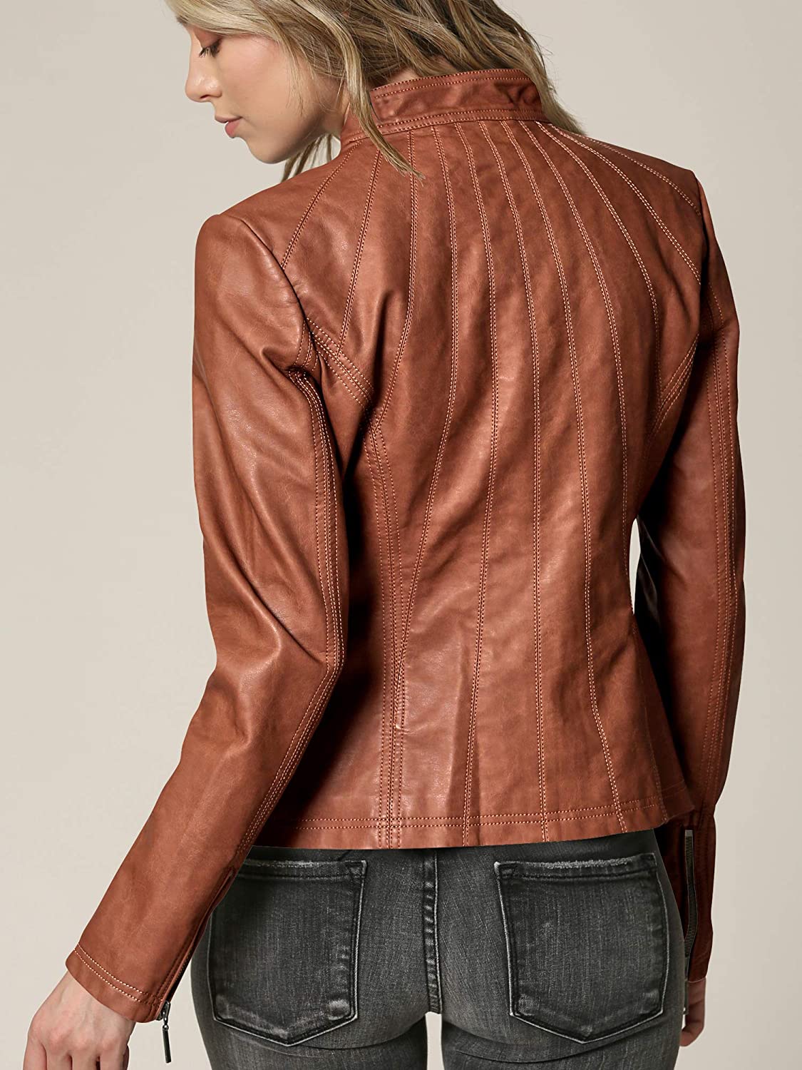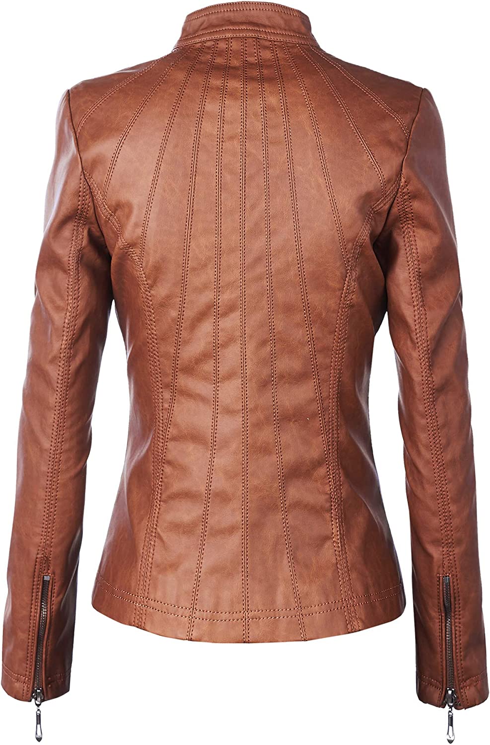 Made By Johnny MBJ Womens Faux Leather Zip Up Moto Biker Jacket with Stitching Detail