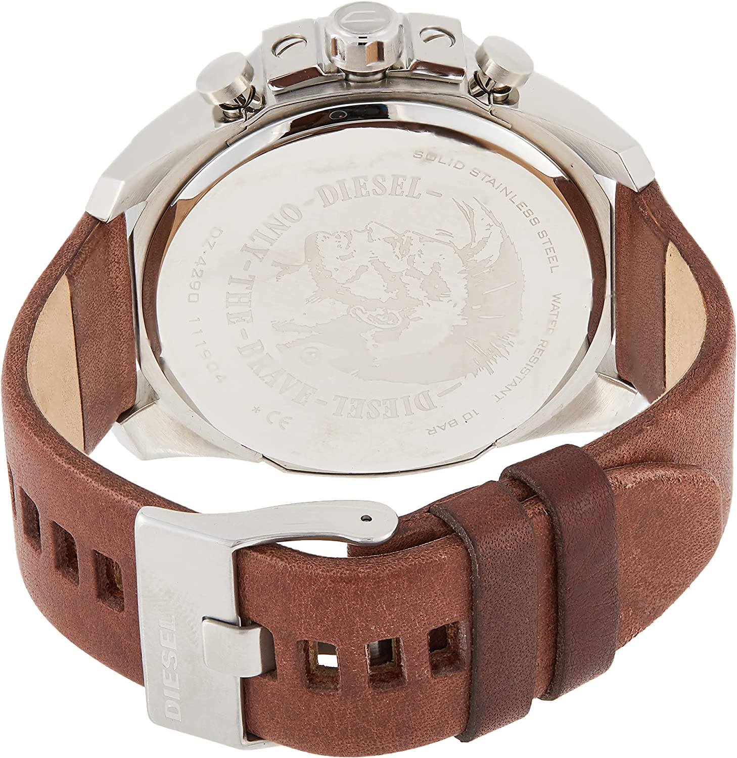 The watch says it all: Only The Brave. When you wear those words featured on a Diesel Mega Chief chronograph dial, you show the world how you live each minute. In fact, the watch's three sub-dials track minutes, seconds, and tenths of seconds.