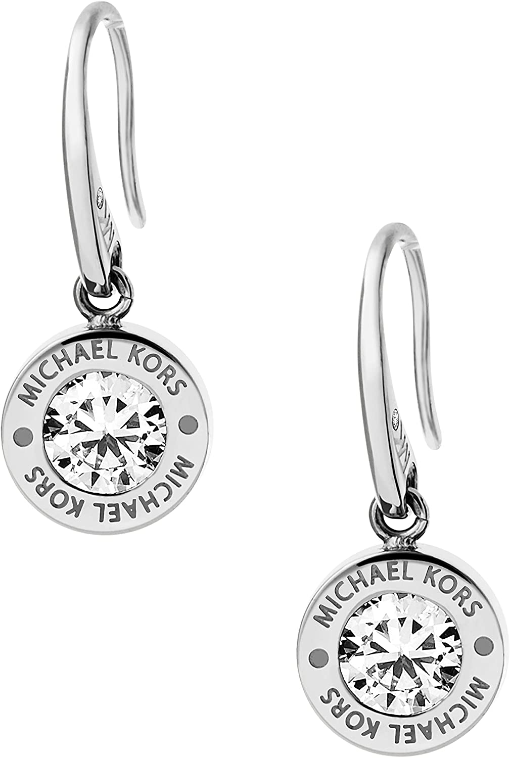 • These stainless steel drop earrings feature the classic Michael Kors logo surrounded by sparkling pave crystals.