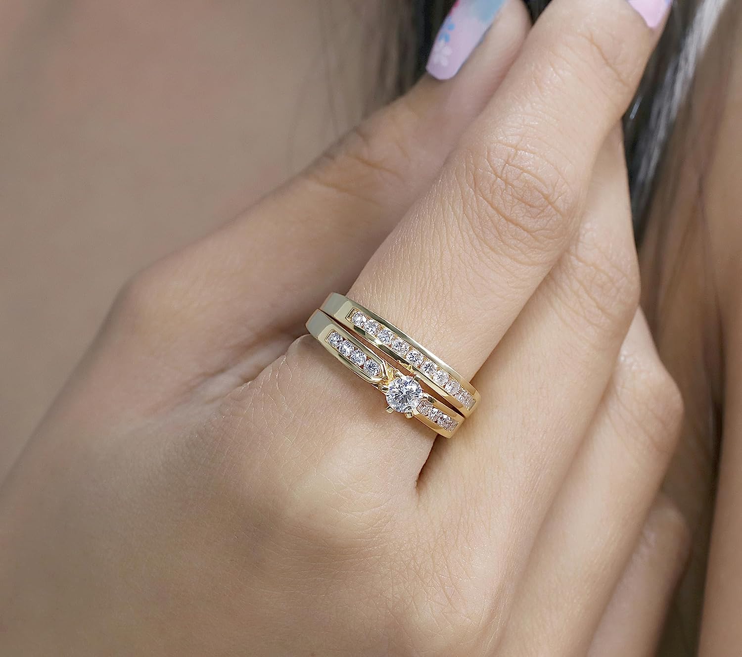 Dazzlingrock Collection Round White Diamond Solitaire Style Tapered Shank Wedding Ring Set for Her (0.95 ctw, Color I-J, Clarity I1-I3) in Gold