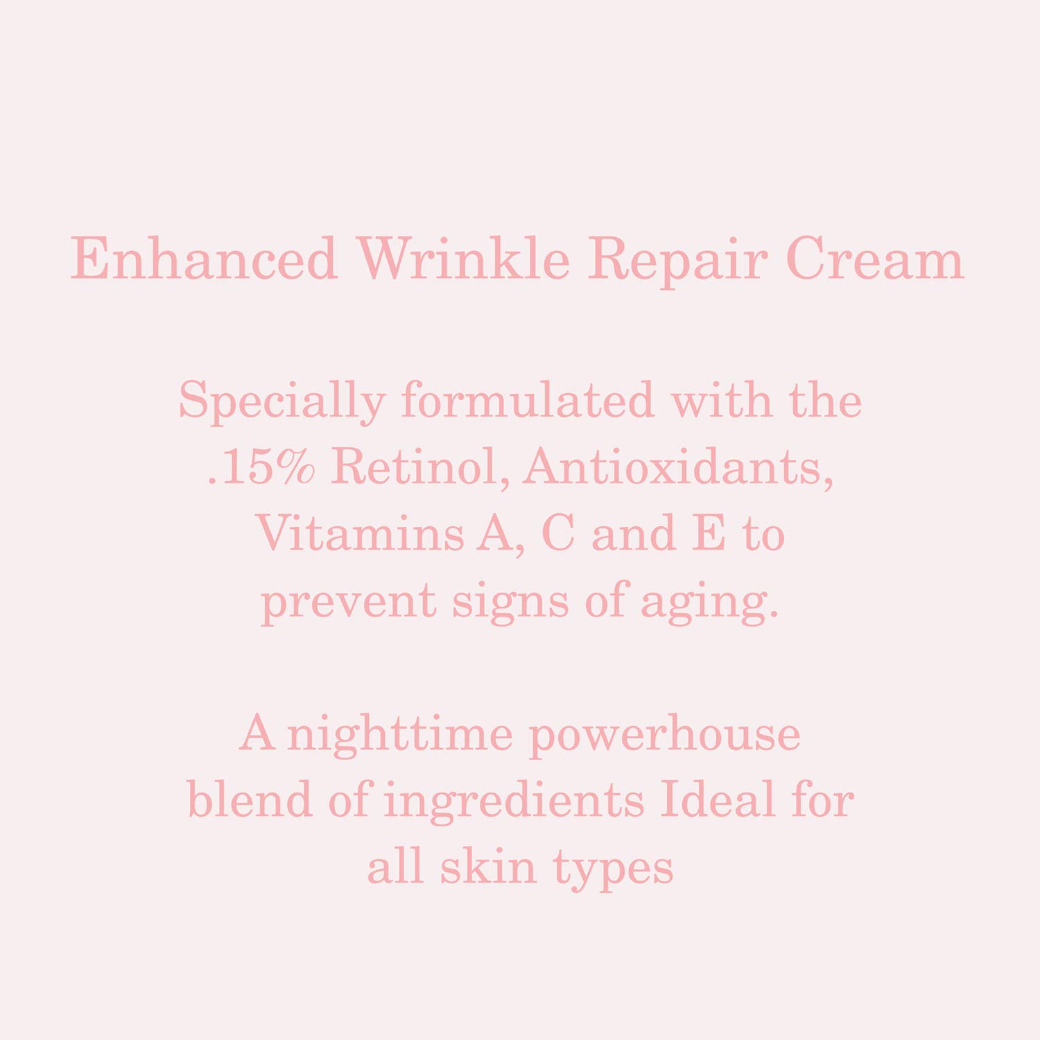 ANTI-AGING FORMULA: Our unique wrinkle repair cream is specially formulated with the .15% retinol. It is also free of oils and fragrances. Retinol is a pure form of Vitamin A, found in vegetables, is essential for healthy skin.
