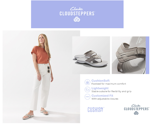 This lightweight Cloudsteppers flip flop benefits from a hook and loop closure that ensures a secure fit. An EVA midsole helps it feel weightless and an airy EVA footbed absorbs shock without adding weight.