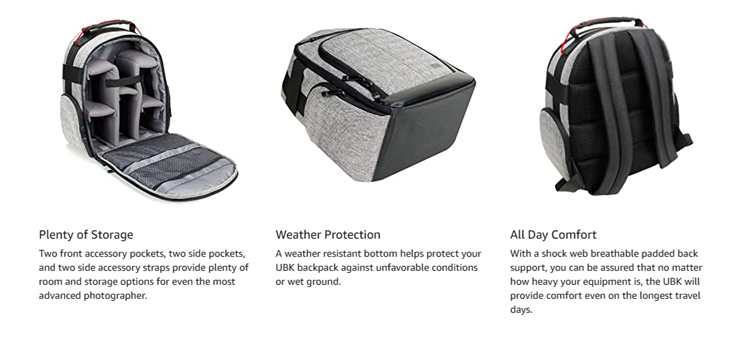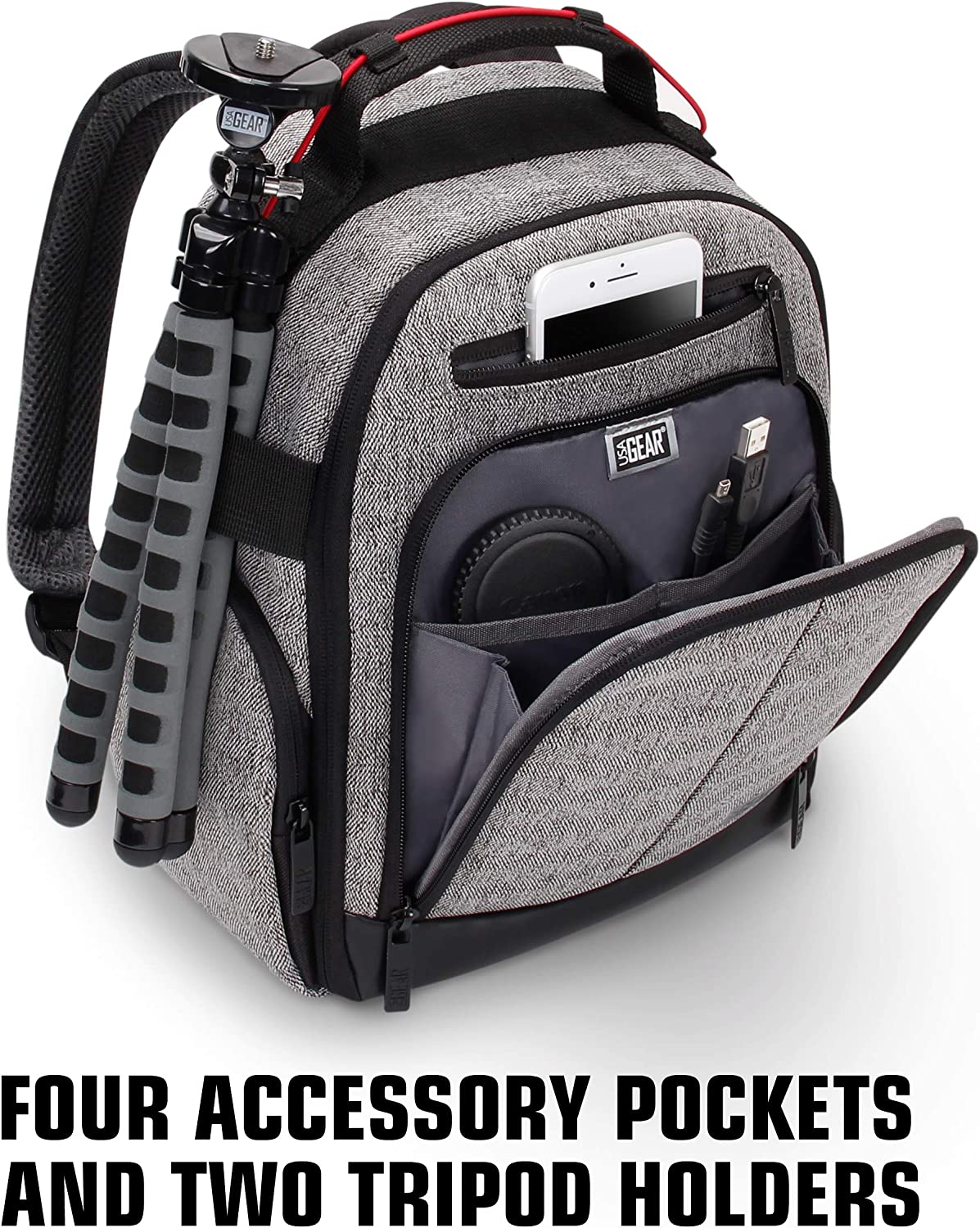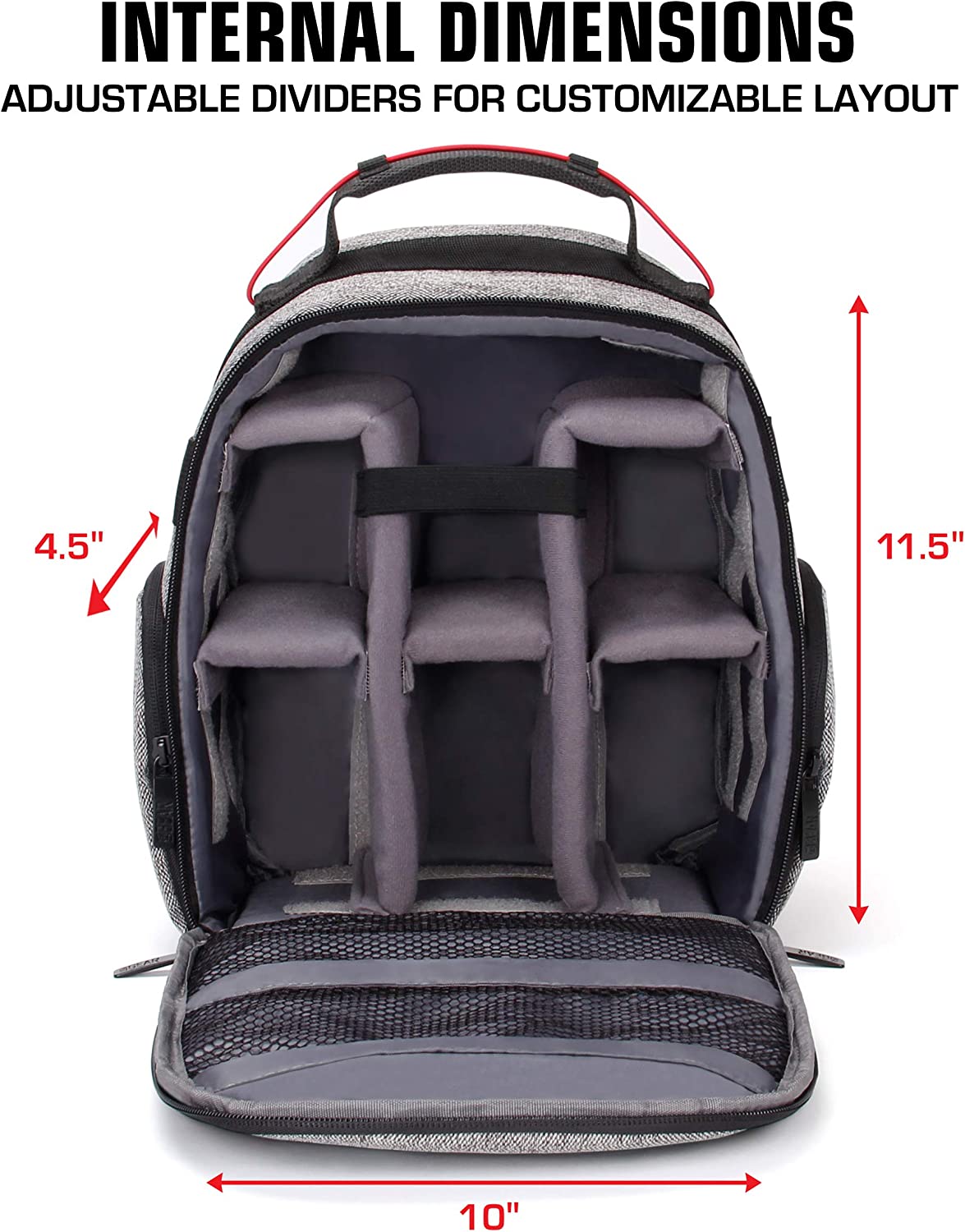 USA GEAR Portable Camera Backpack for DSLR (Gray) with Customizable Accessory Dividers, Weather Resistant Bottom and Comfortable Back Support - Compatible with Canon, Nikon and More