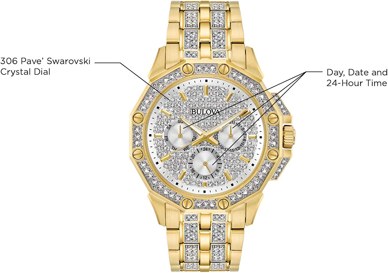 From the Bulova Men's Crystal Collection, make a brilliant statement with a watch detailed with authentic crystals.