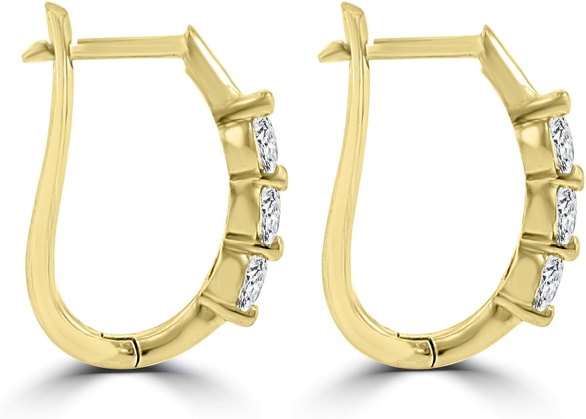 Madina Jewelry 1.10 ct Ladies Round Cut Diamond Hoop Huggie Earrings