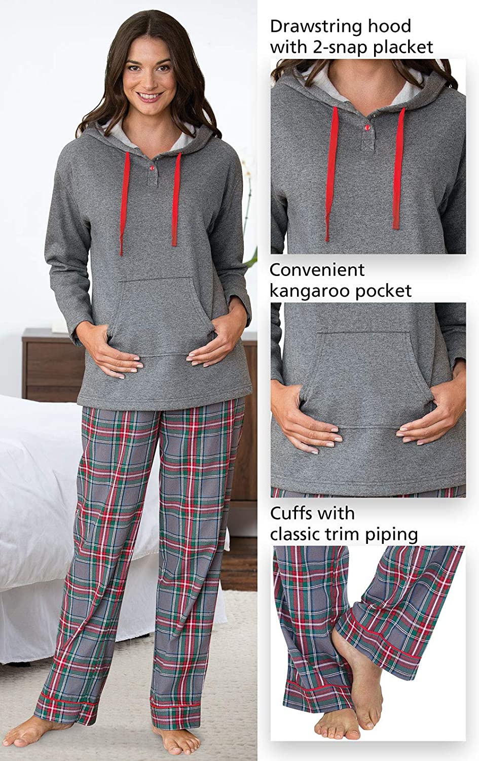 Hoodie sweatshirt - Womens Pajama Set includes a soft Hoodie sweatshirt with a hood, drawstring and kangaroo pocket for a personalized fit, pure warmth and convenient storage