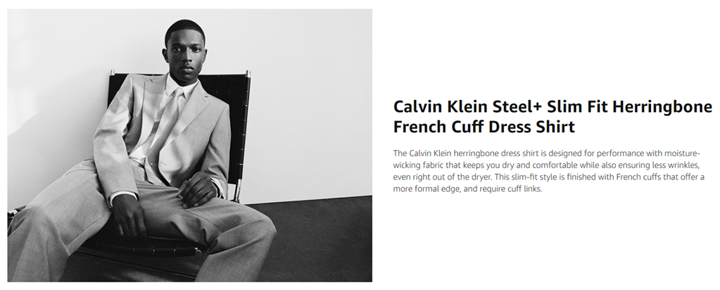 Calvin Klein Men's Dress Shirt Slim Fit Non Iron Herringbone French Cuff