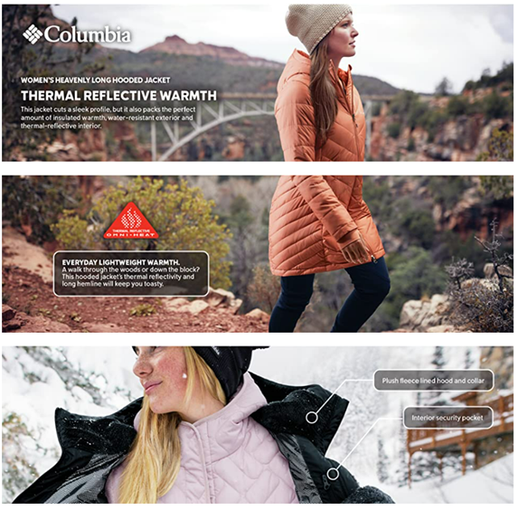 The Columbia Women's Heavenly Long Hooded Jacket combines stylish urban looks with technology to keep you warm and dry. Made for women, this great fall and winter jacket features a long silhouette with a modern fit and drop tail. Crafted of a water resistant shell, lined with Omni-HEAT reflective lining, along with a yummy plush fleece lined collar, quality assembly, construction, and stitching, the advanced technology infused into this jacket will instill a sense of confidence when the weather turns super blustery and cold. Unique to this jacket, the sleeves have built-in thumb holes and comfort cuffs to provide a sense of control and warmth to your arms and hands. The two-way main front zipper provides up/down options for flexibility of movement and warmth control when needed, while the zippered side pockets keep your small items secure (including your hands when the outdoors get extra cold). The water resistant fabric keeps you protected during unexpected downpours. This women's winter jacket is offered in multiple colors and sizes. Extended sizing available. Active and Regular Fit. To ensure the size you choose is right, utilize our sizing chart and the following measurement instructions: For the sleeves, start at the center back of your neck and measure across the shoulder and down to the sleeve. If you come up with a partial number, round up to the next even number. For the chest, measure at the fullest part of the chest, under the armpits and over the shoulder blades, keeping the tape measure firm and level.
