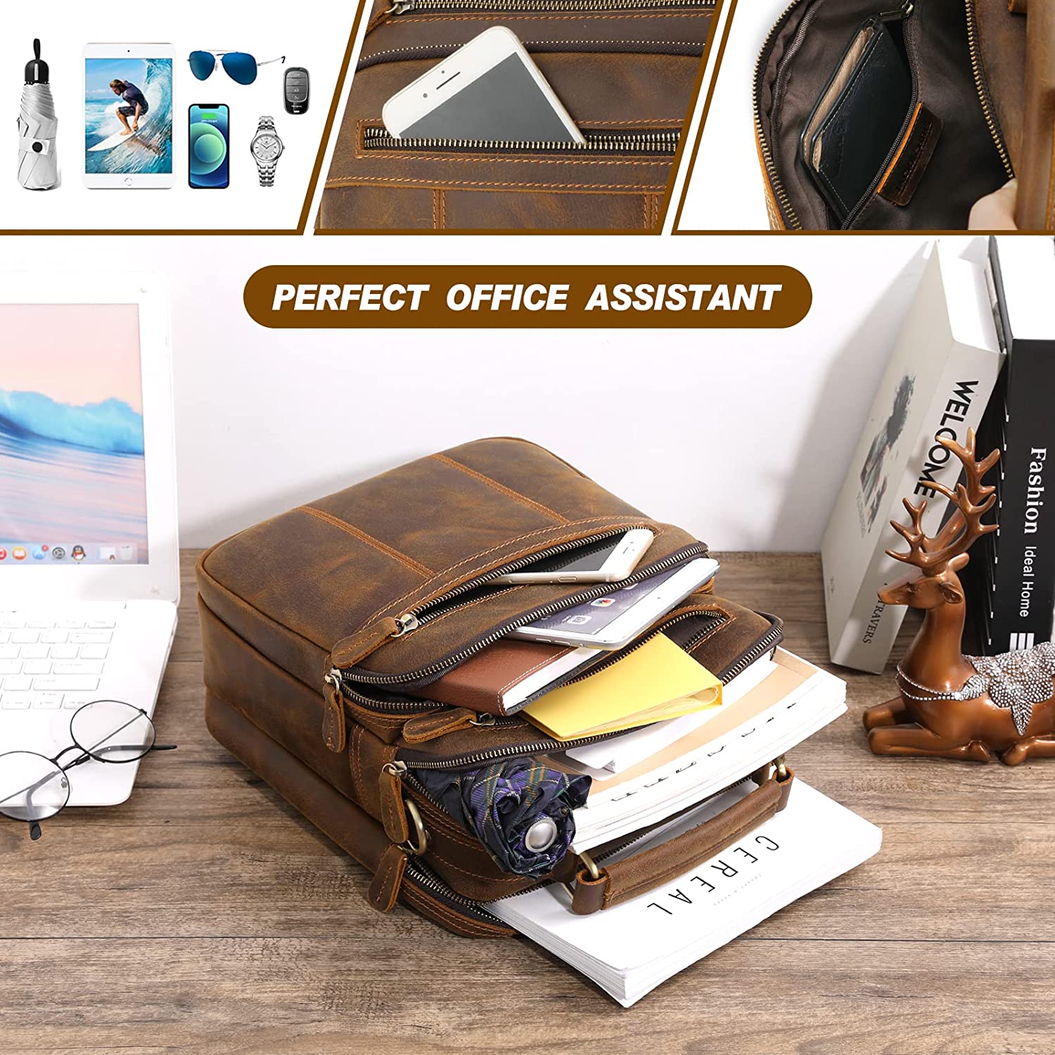 • Multi-purpose Use: Elegant leather messenger bag with multiple pockets fit your every different purpose use, like school, travel leather messenger bag, outdoor, work, shopping and etc.