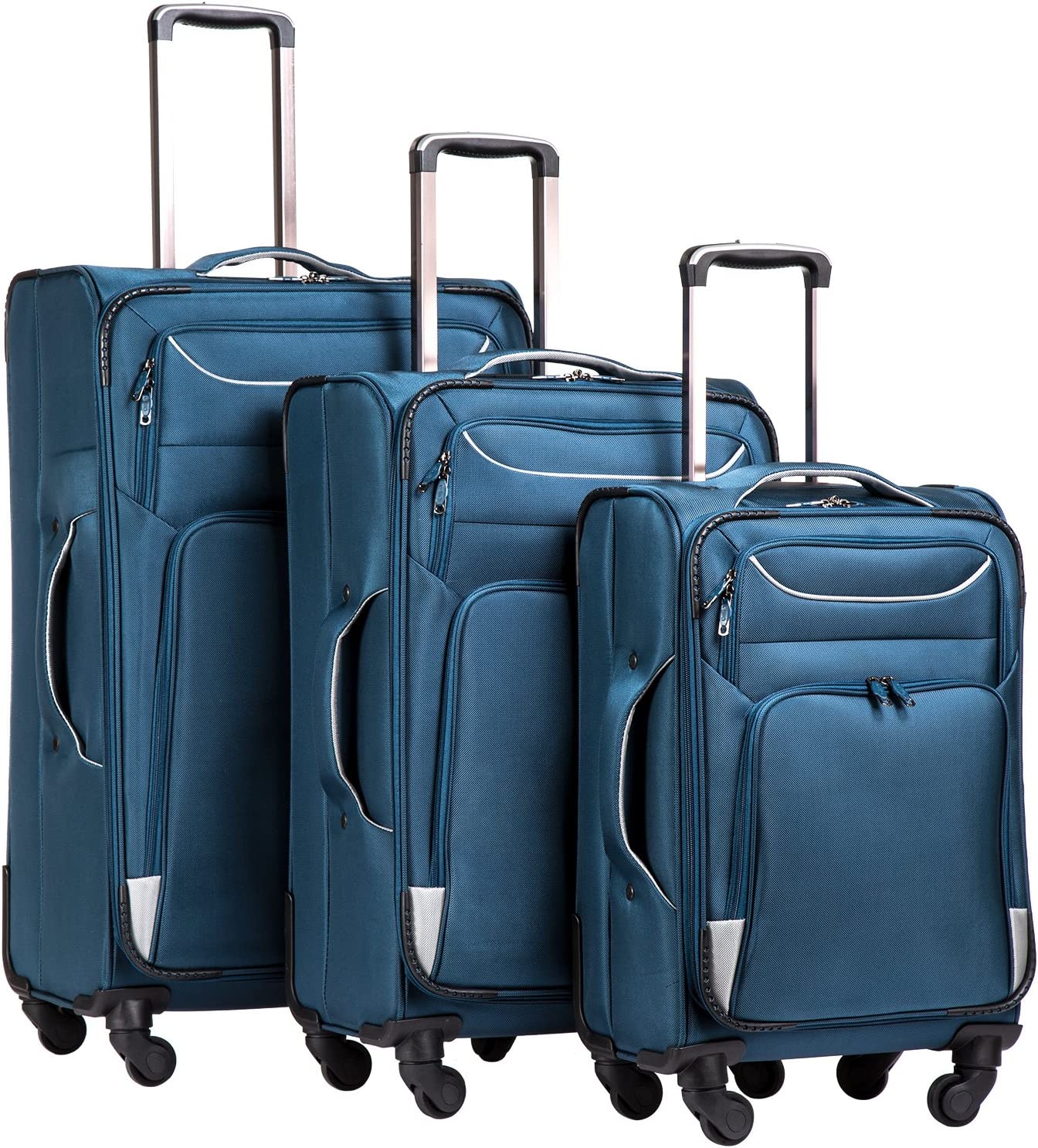 Coolife Luggage 3 Piece Set Suitcase Spinner Softshell lightweight (blue+sliver)