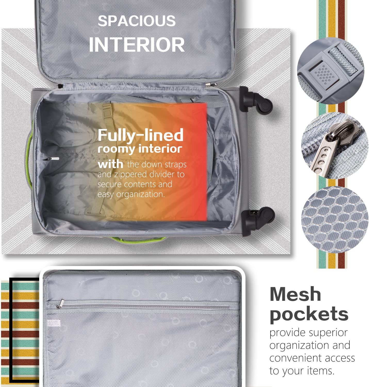 Four multi-directional spinner wheels and Telescopic Handle for easy mobility.