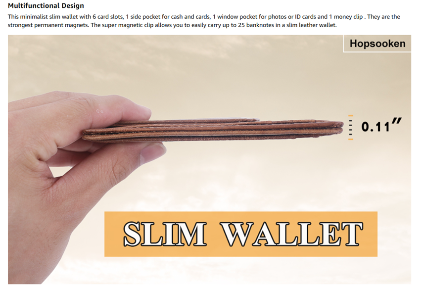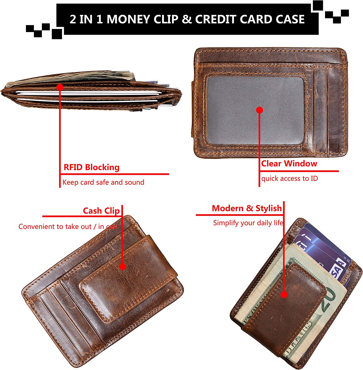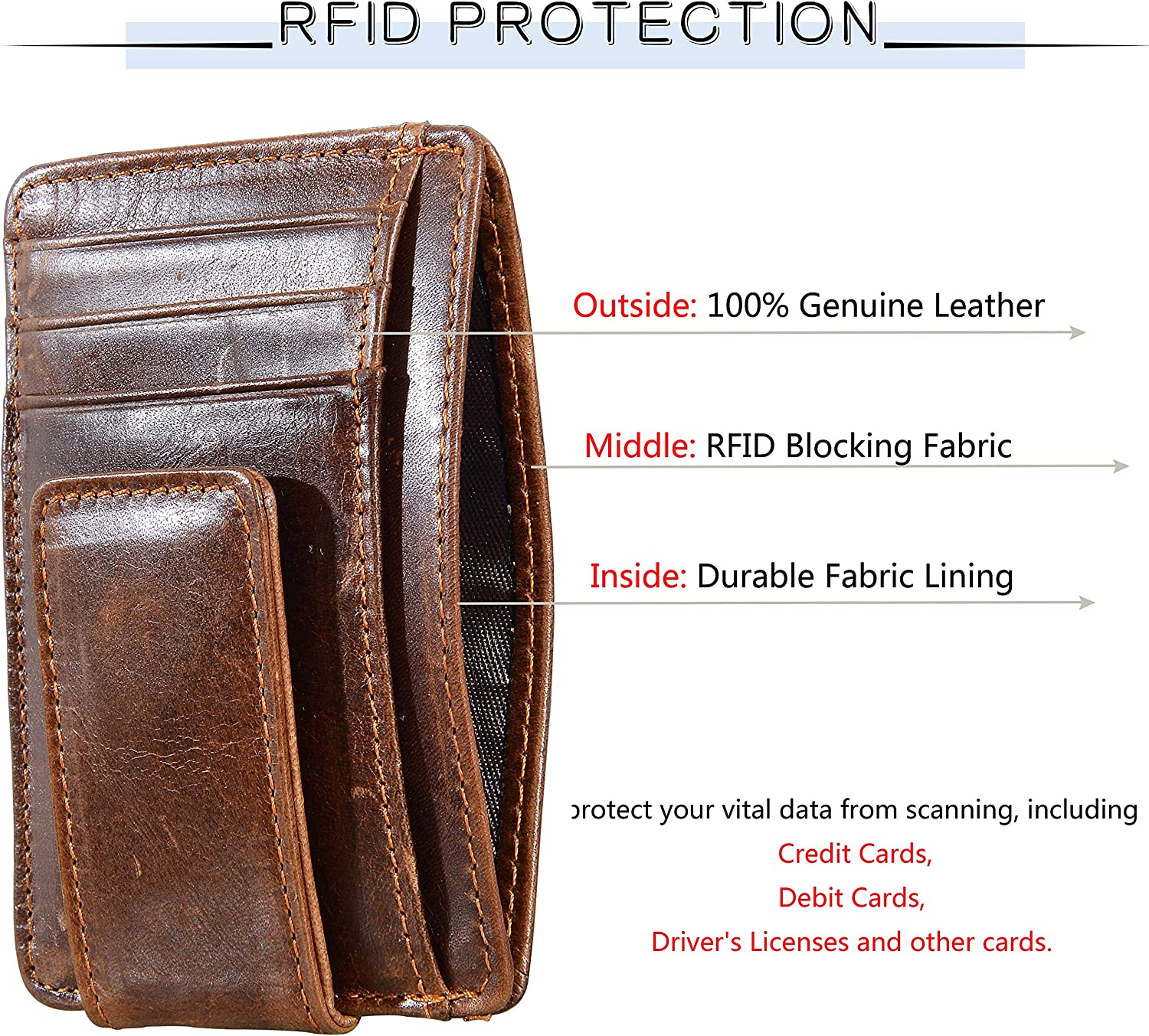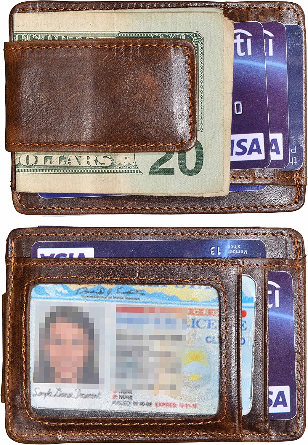 HOPSOOKEN Money Clip RFID Front Pocket Wallet Men Leather Slim Minimalist Wallet