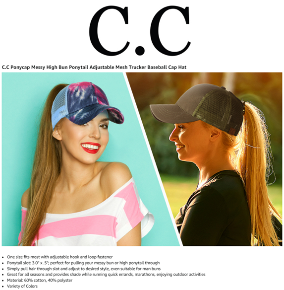 C.C Ponycap Messy High Bun Ponytail Adjustable Mesh Trucker Baseball Cap Hat