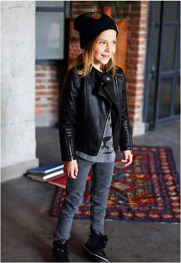 Grils Moto Bomber Faux Jackets, Zipper Closure, Pockets on Both Sides of The Waist, Stand Collar, Short Waist Style.