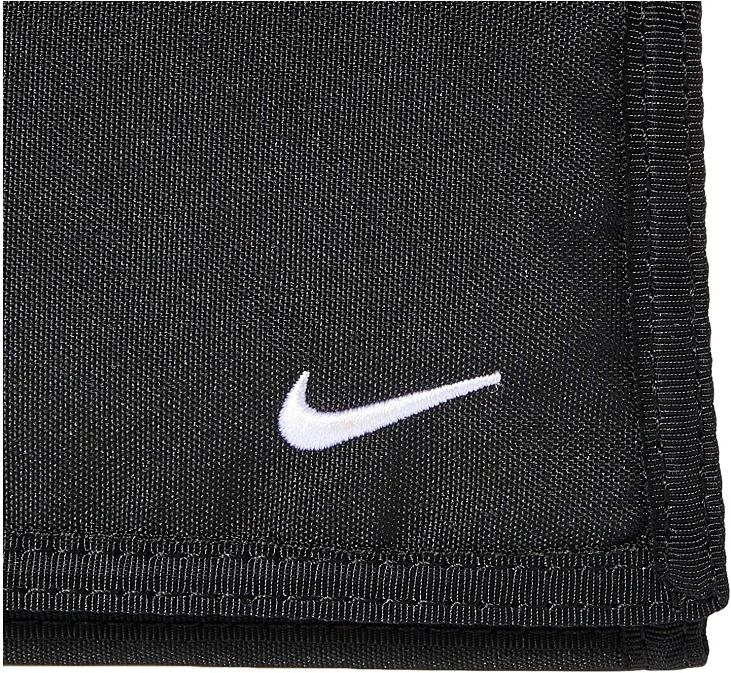 Tri-fold design. External zippered pocket. Embroidered Nike swoosh on front. Fabric Body: 100% Polyester, Lining: 100% Nylon.