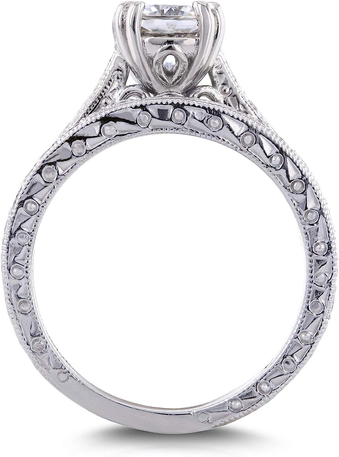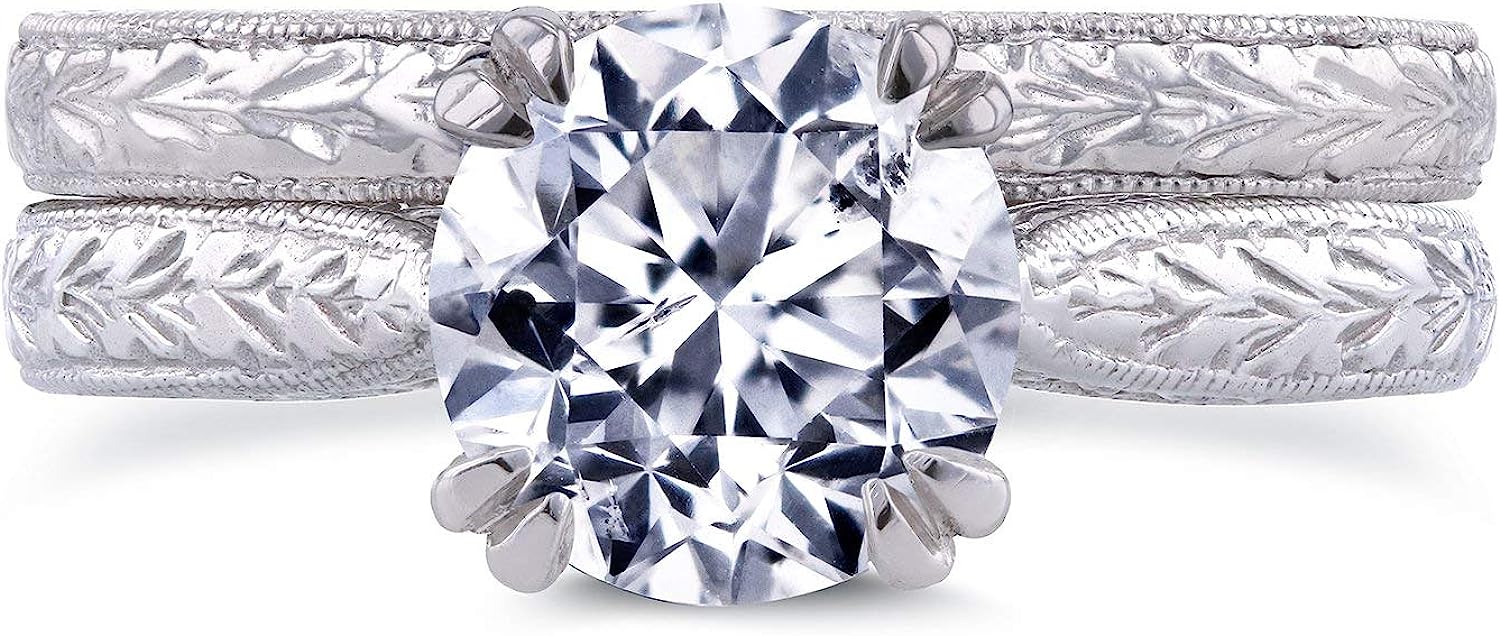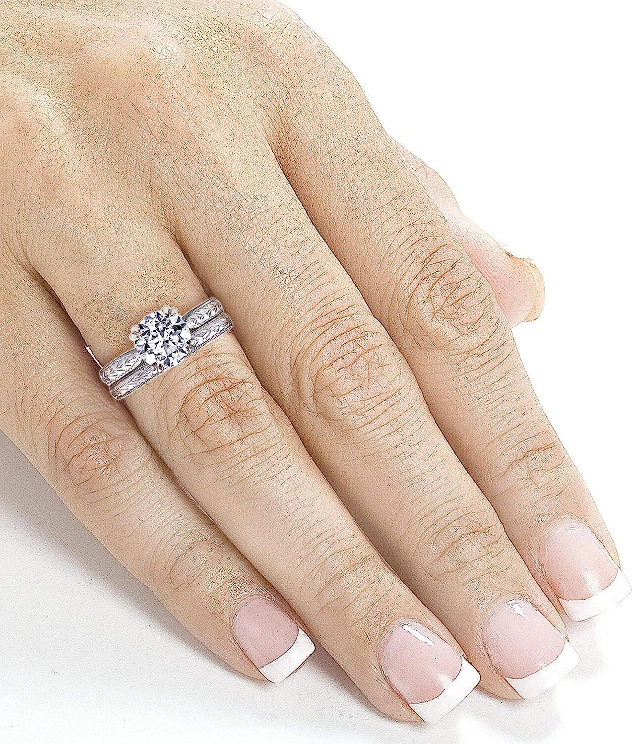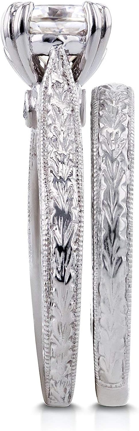 Kobelli Diamond Antique Style Engravings Bridal Set 1 CTW in 14k White Gold