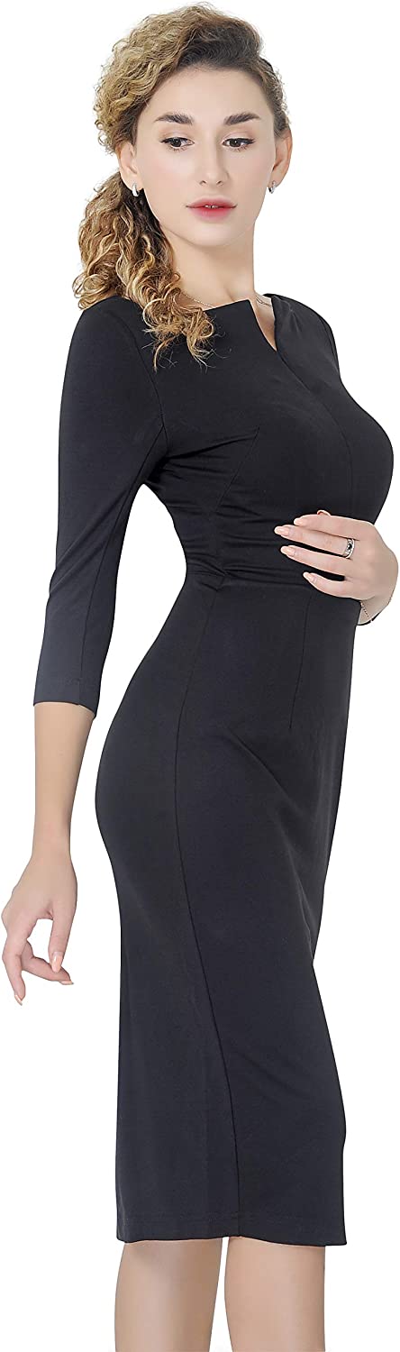 Made by Marycrafts, this dress, undoubtedly owns elegant and modest features to help you inner lights shine in every occasion FEATURES: - SQUARE SLIT NECK - 3/4 SLEEVES - PENCIL SILHOUETTE - COPPER BACK ZIPPER - MIDI LENGTH (43-45")