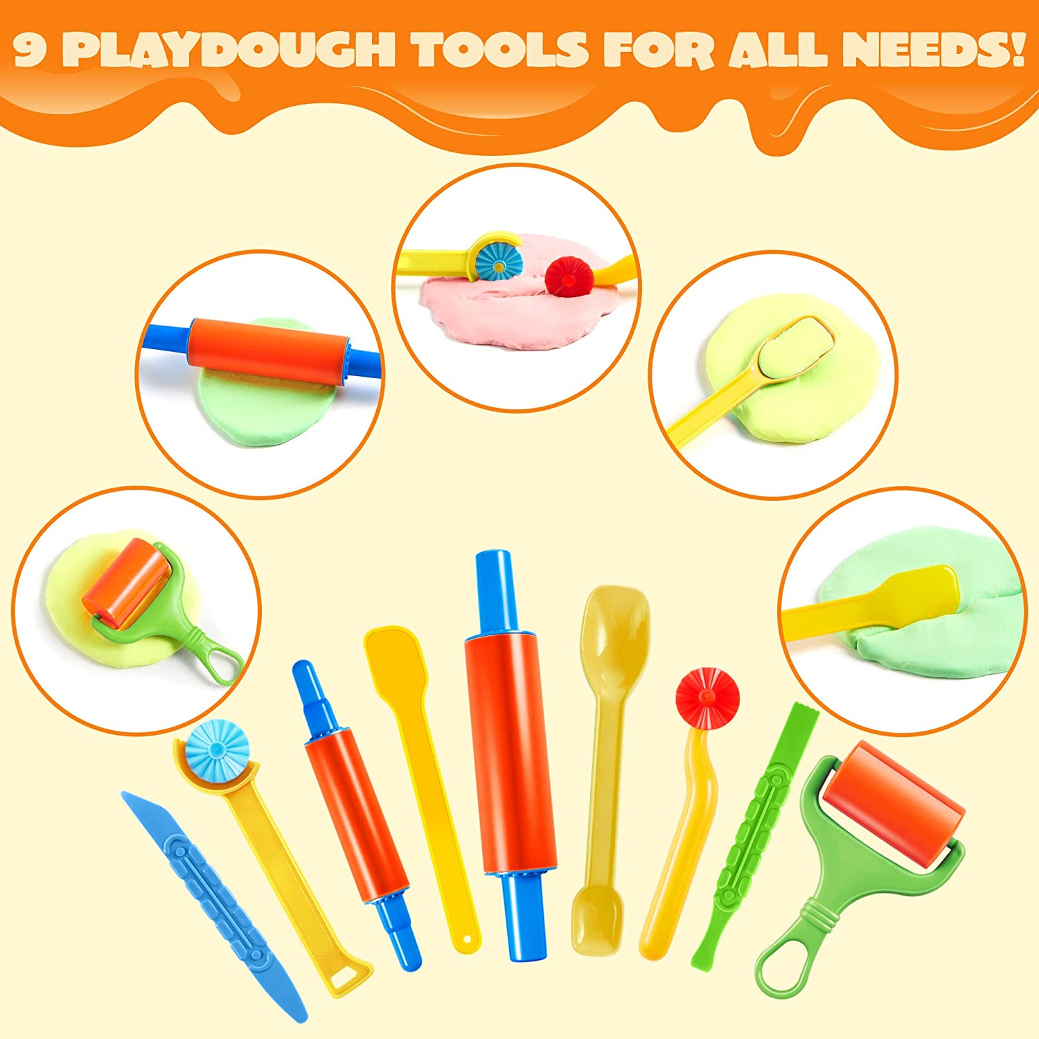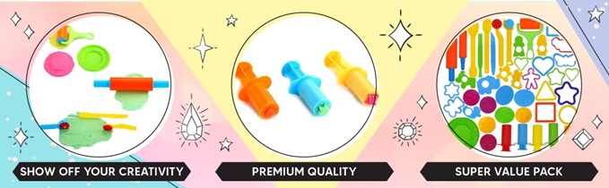 • Endless Fun: Extruder Shapes (Spaghetti, Heart, Star etc.) and Molds (Animals, Plant, etc.) Allow Children to Learn About Shapes. Dough Tools (Rolling Pins, Cutters etc.) Allow Toddlers to Practice the Ability of Hand-eye Coordination and patience as They Play.