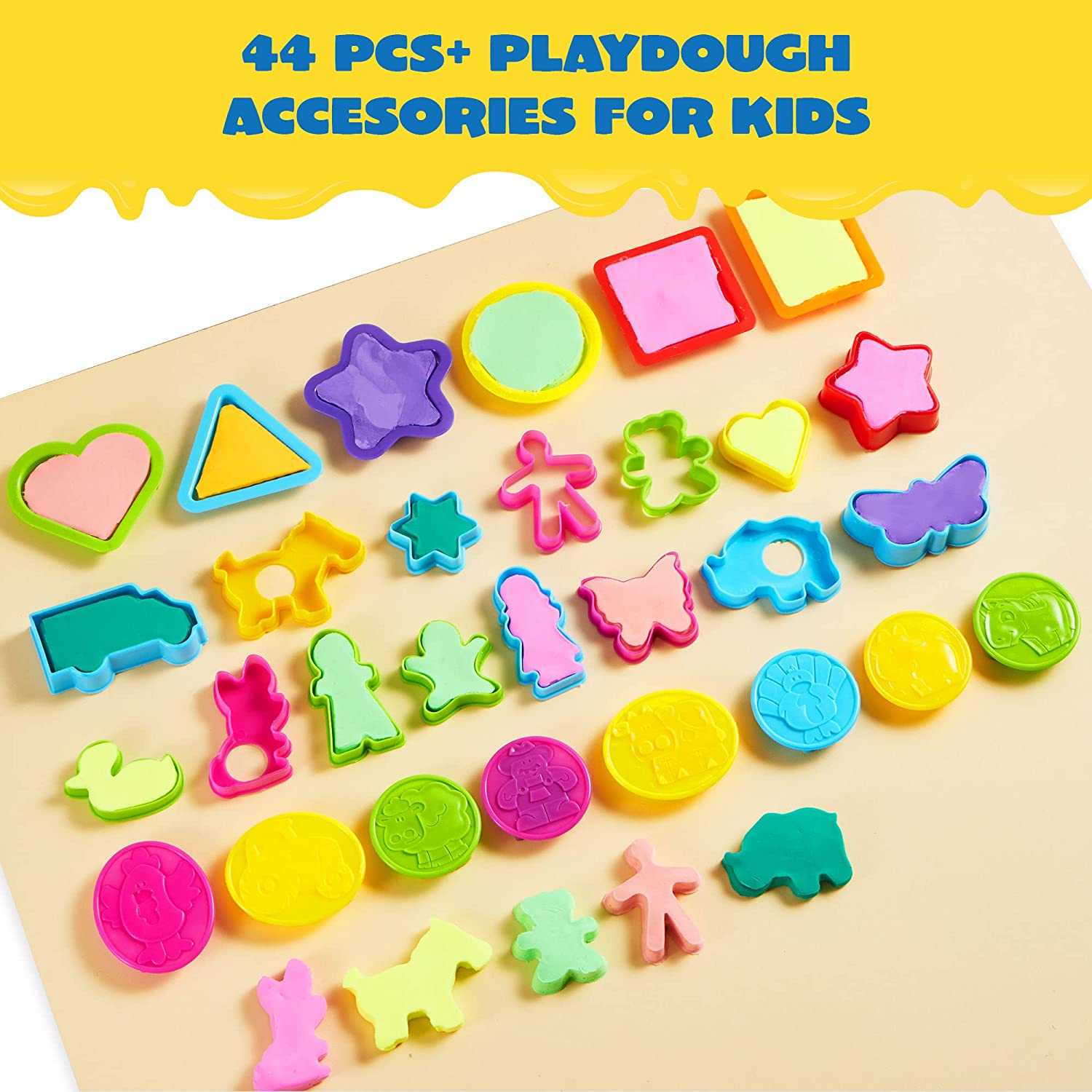 Joyin 44 Pieces Play Dough Accessories Set for Kids Playdough Tools with Various Plastic Molds,Rolling Pins, Cutters