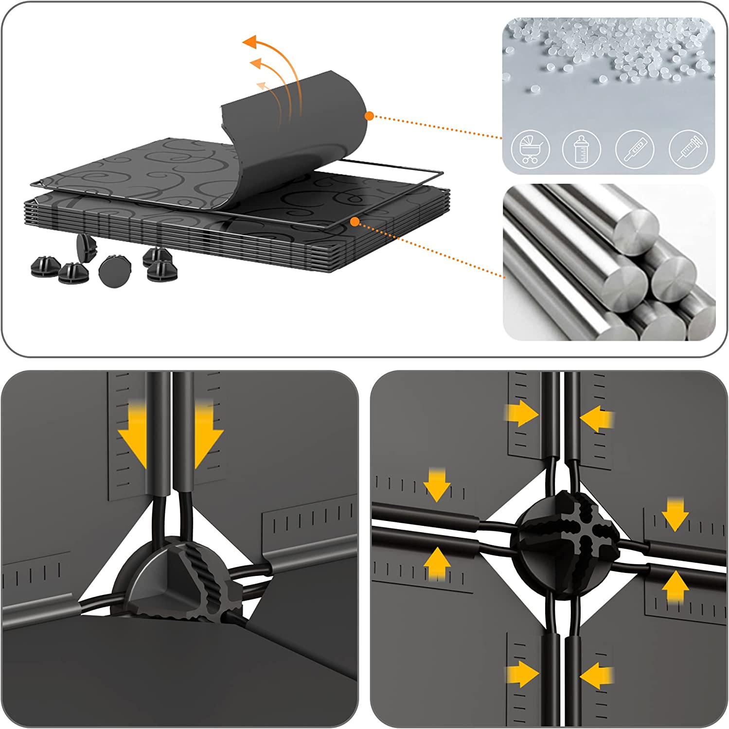 【Environmental Protection Material】 Composed of polyethylene plastic board, sturdy metal frame and ABS resin connector, the material is environmentally friendly and durable, light weight, waterproof,dust-proof. Just wipe with a damp cloth for daily cleaning.