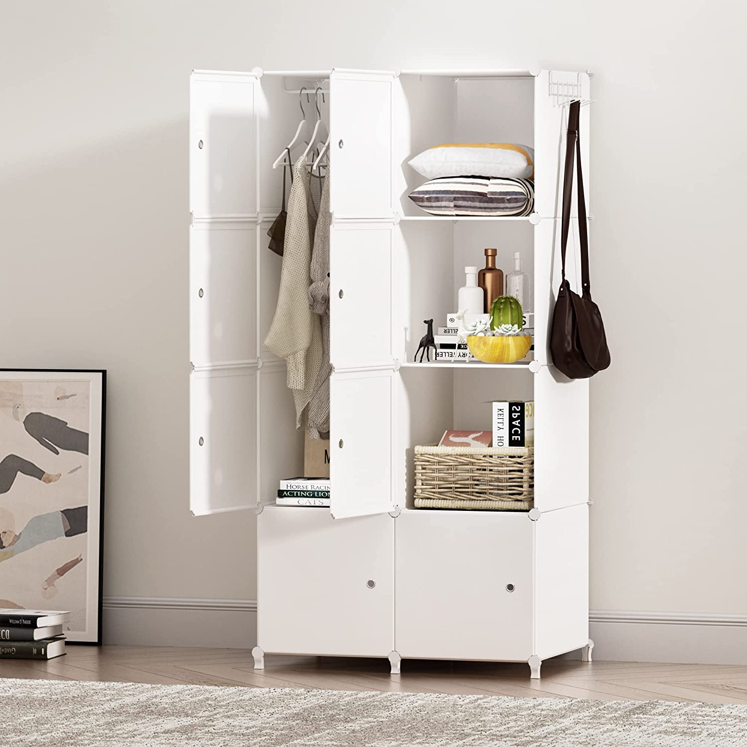 【Large Storage Performance】The size of each cube is 13.78 (length) * 13.78 (depth) * 18.5 (height) (inches), and one cube can hold up to 22 pounds. We also provide hanging clothes rail, it can provide you with enough storage space to keep things tidy.