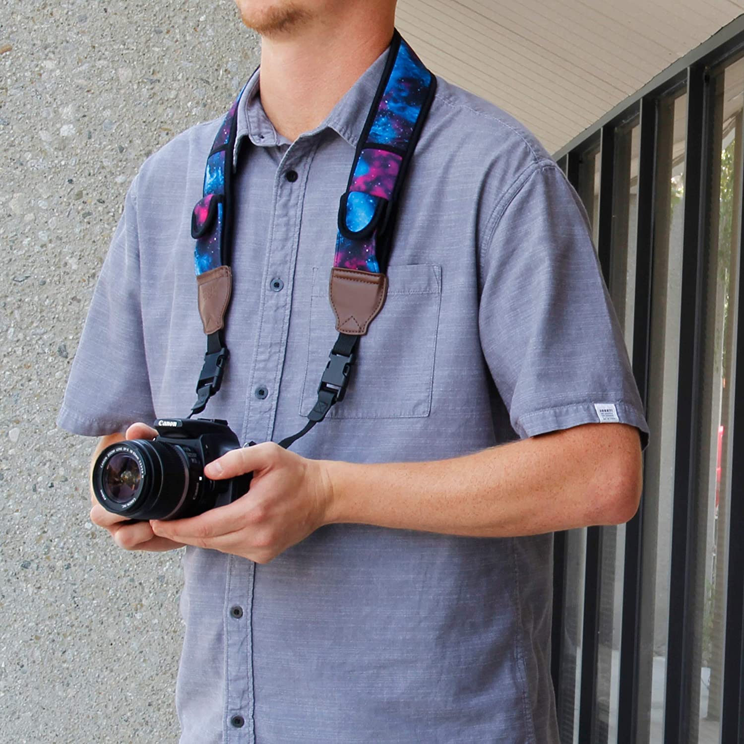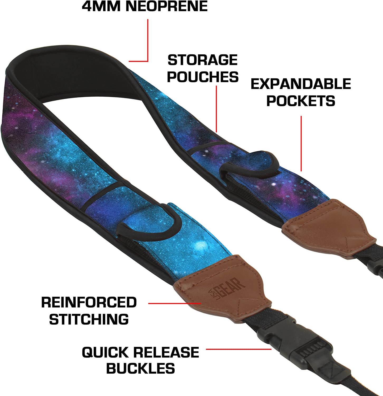 USA GEAR TrueSHOTNeck Strap Neoprene Camera Straps - Padded Camera Strap, Accessory Pocket, and Quick Release Buckles - Compatible with Canon, Nikon, Sony and More DSLR and Mirrorless Camera - Galaxy