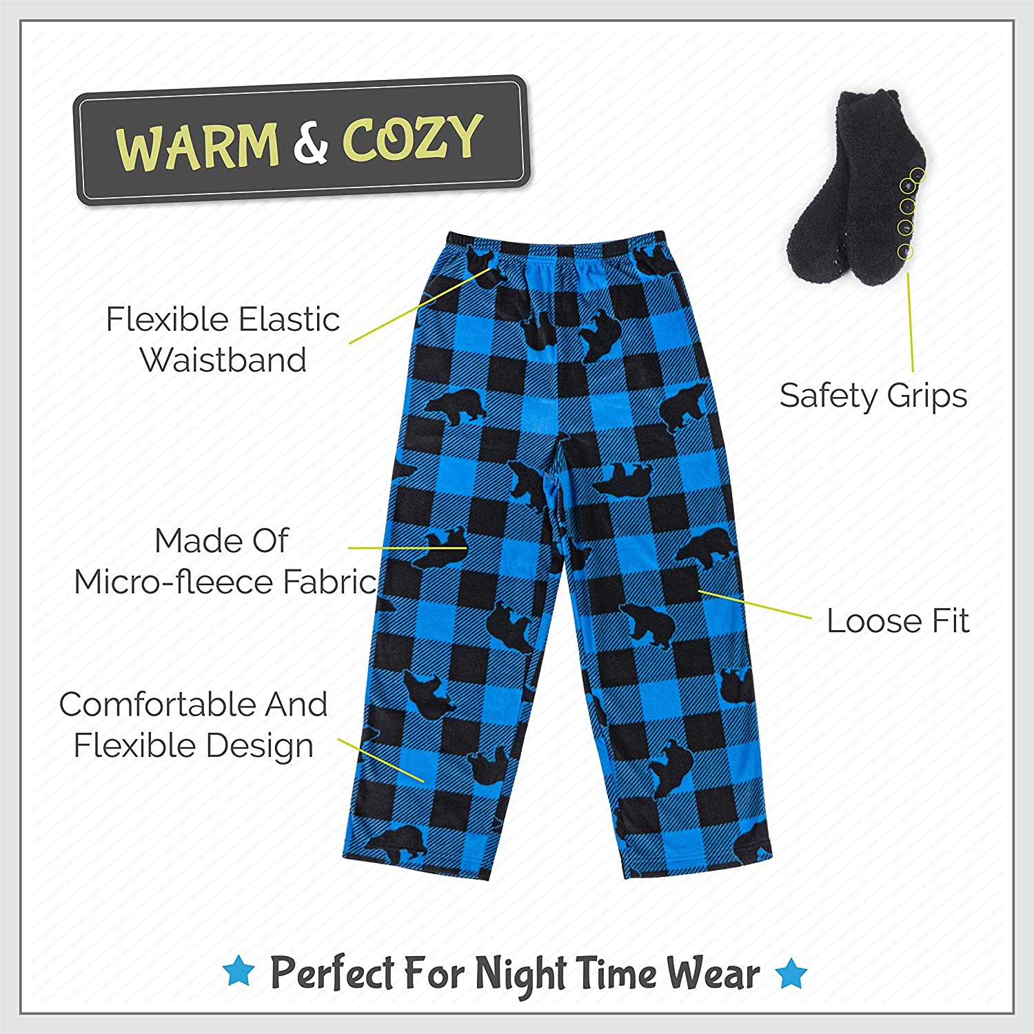 Give the Gift that Keeps on Giving: These 2 pack boys' flannel pants and slipper socks make for a perfect present to give any boy, especially one in your life who loves wearing pajamas!