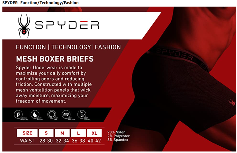 • Spyder Underwear is Made to Maximize your daily Comfort by Controlling Odor and Reducing Friction
