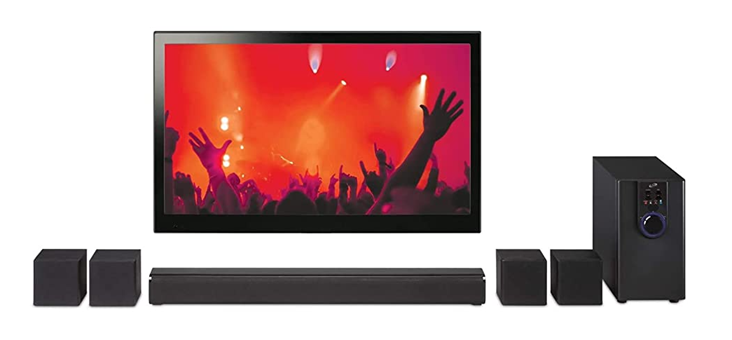 Complete your home theater experience with stunning sound from this 5. 1 channel powered speaker system. You'll hear every detail whether you connect via Bluetooth or RCA input. This home theater system features 6 surround speakers: subwoofer, front left and right, surround left and right and a 26 inch sound bar. With a wireless range of 60 feet, this system includes a remote control, 3. 5mm to RCA audio cable, 3 RCA stereo audio cables, and user's guide. Sound bar and satellite speakers are wall mountable (hardware not included). iLive products offer exciting, innovative features with a quality and affordability that you can depend on. AC power: built-in AC power cable,Soundbar Dimensions: 26 x 2.5 x 2.5,Single Speaker Dimensions: 3.54 x 2.95 x 3.54,Subwoofer Dimensions: 5.43 x 8.86 x 9.65,Cloth speaker grill,LED function indicator.
