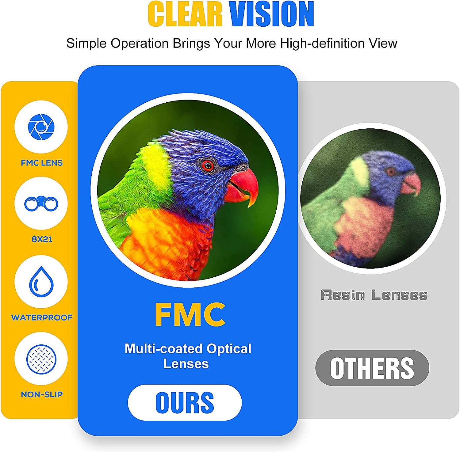 Crystal Clear View: The FMC prism green coated optics system can control optical reflection to create crisp and colorful images. The product ensures the user can see the entire visual field for capturing objects easily with 7.2° viewing angle. Multi-layer broadband coating technology, make you see the scene more realistic.