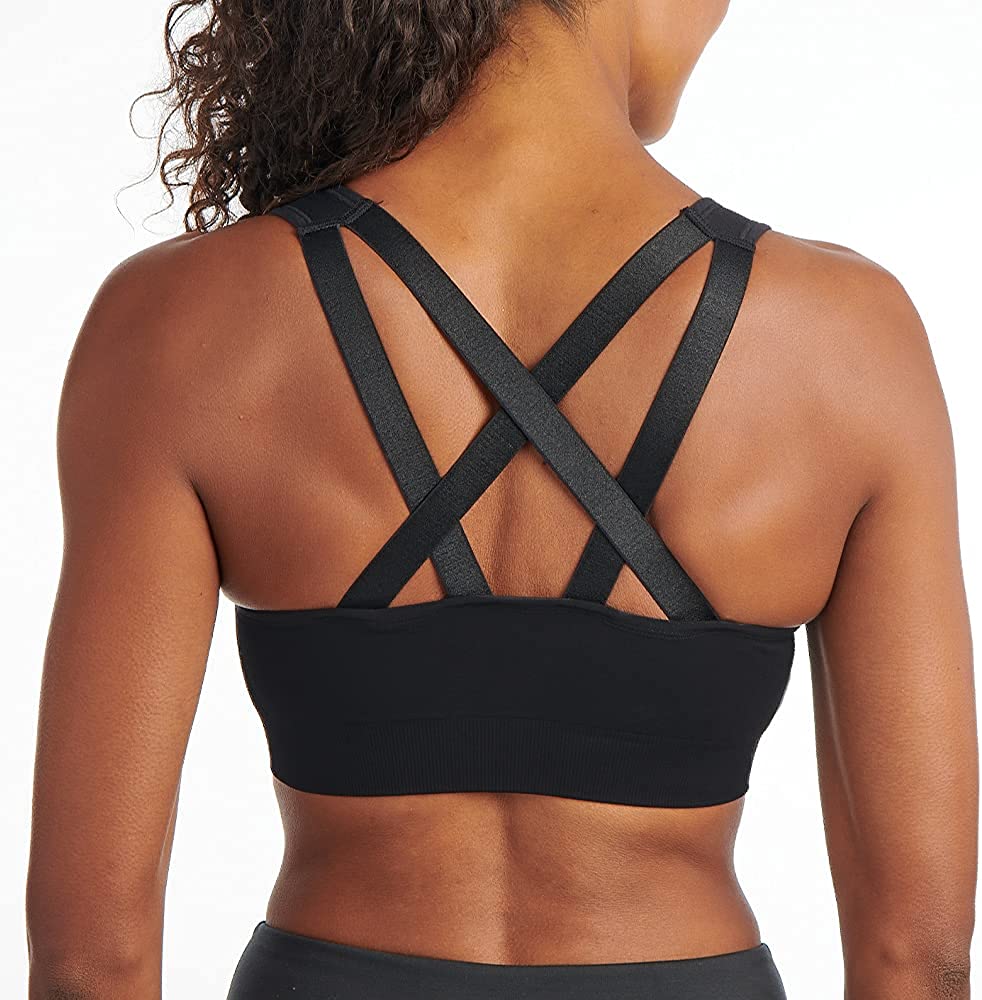 Evercute Cross Back Sport Bras Padded Strappy Criss Cross Cropped Bras for Yoga Workout Fitness Low Impact