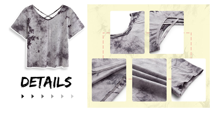 Features: Scoop neck, short sleeve, criss cross back, crop t shirt